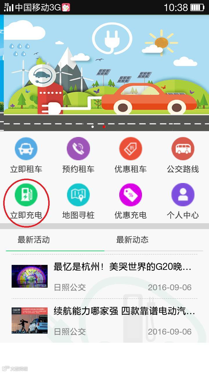 2、打开“新出行”APP,点击“立即充电”,并扫码。
