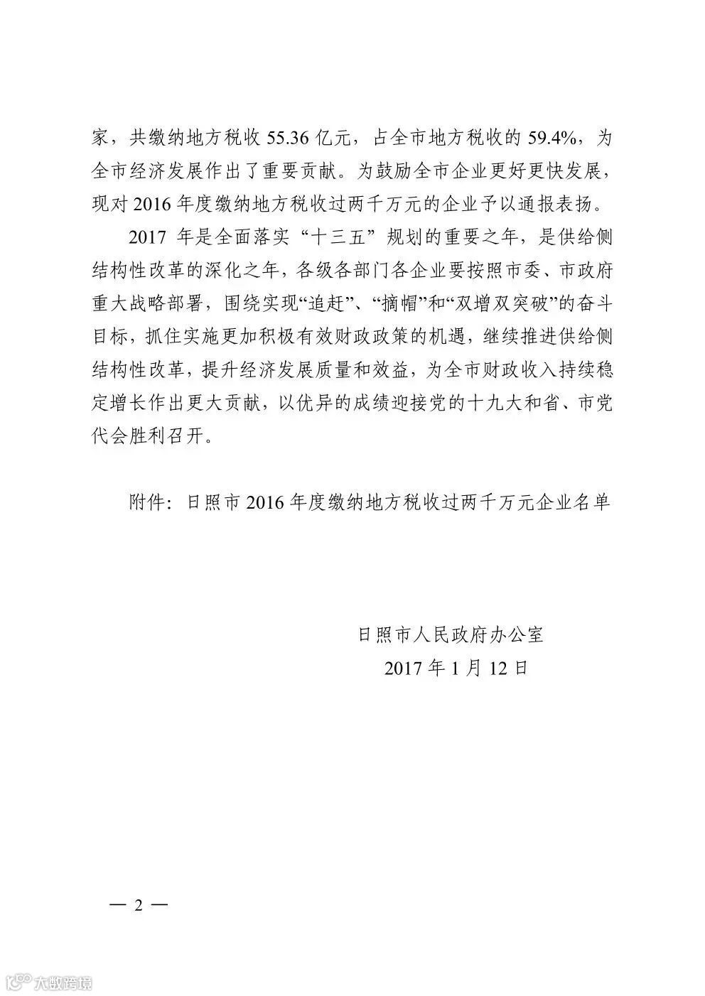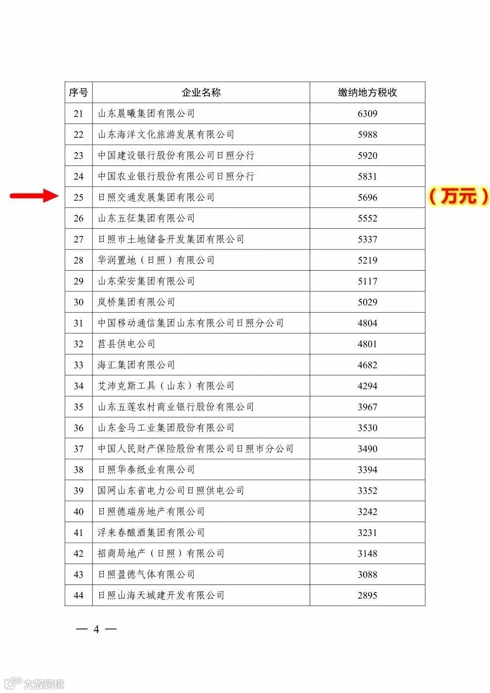 日照交通发展集团有限公司榜上有名,年度缴纳地方税收5696万元。