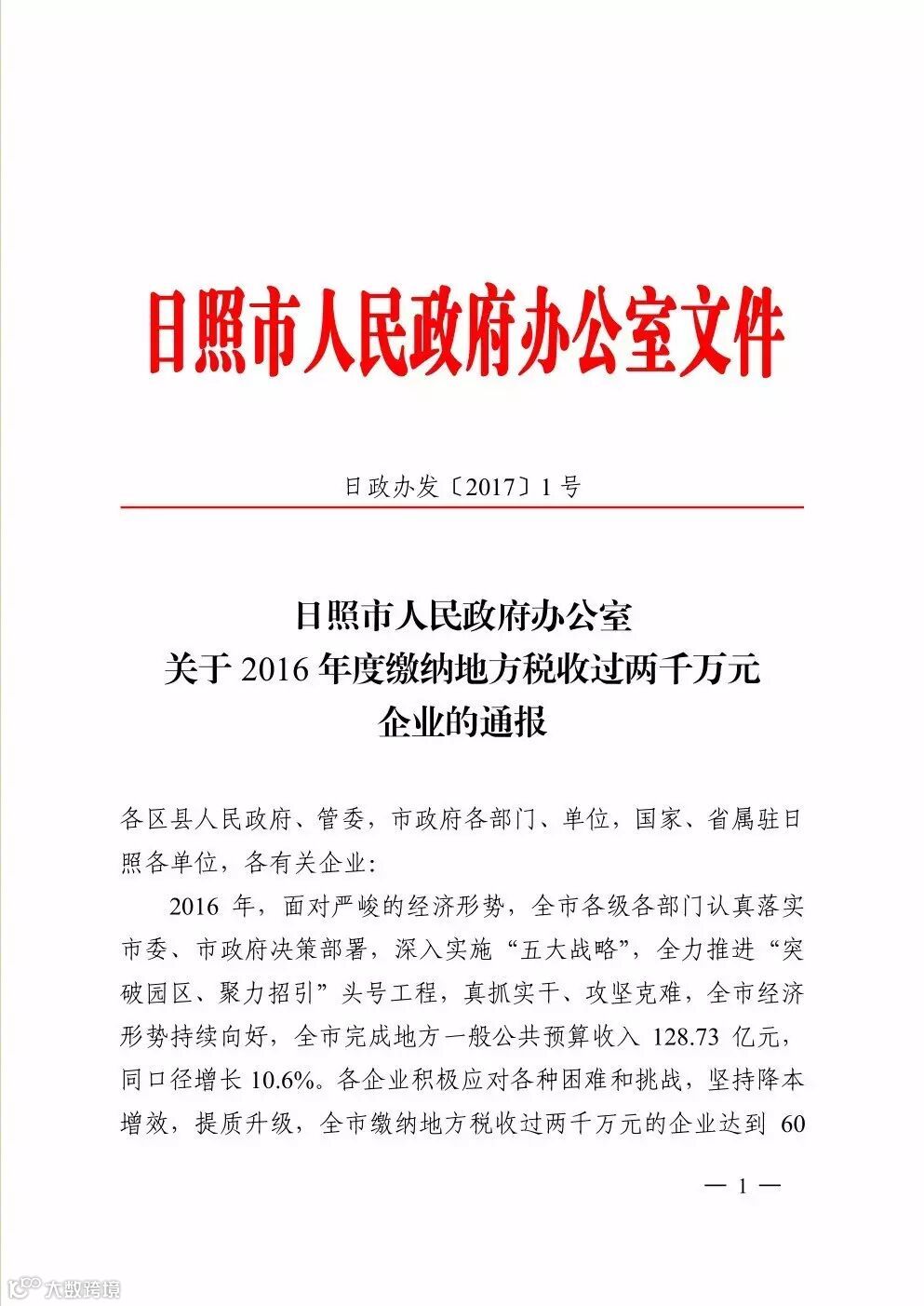 近日,市政府通报表扬2016年度缴纳地方税收过两千万元的60家企业。