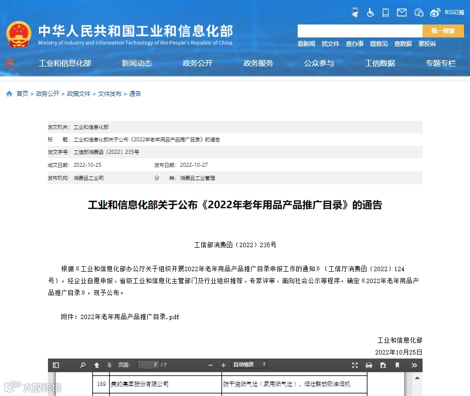 美颐享防干烧燃气灶和烟灶联动吸油烟机两款入选《2022年老年用品产品推广目录》近期在工业与信息化部官网公示。