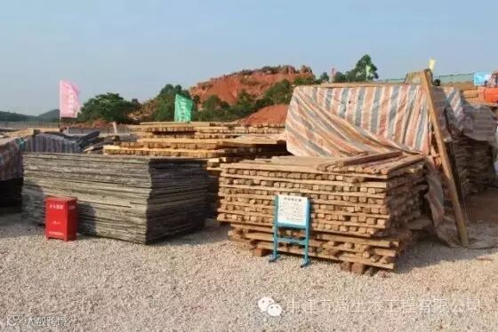 材料码堆:所有材料不得直接堆放于土上,需用木方进行加垫,且材料码放整齐。