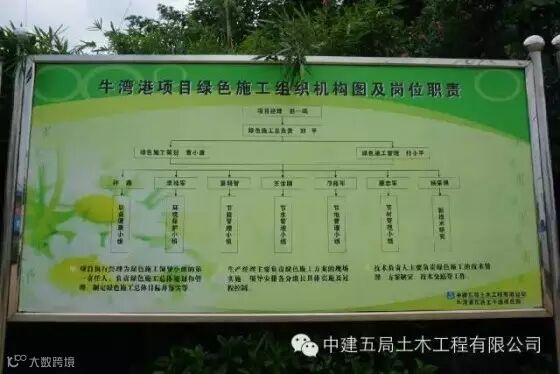 组织健全:绿色施工组织机构图及岗位职责公示牌。