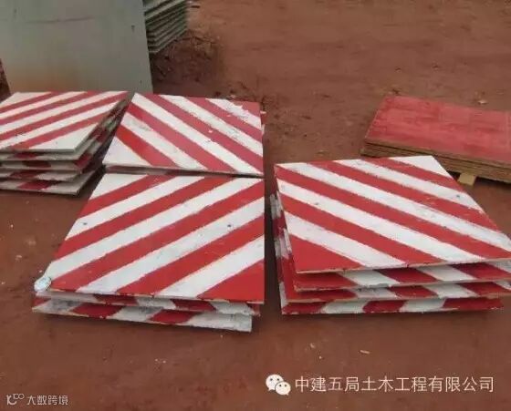 废料利用:利用废旧模板制作成临时防坠井盖,涂刷红白相间的油漆,用于检查井井筒防护。