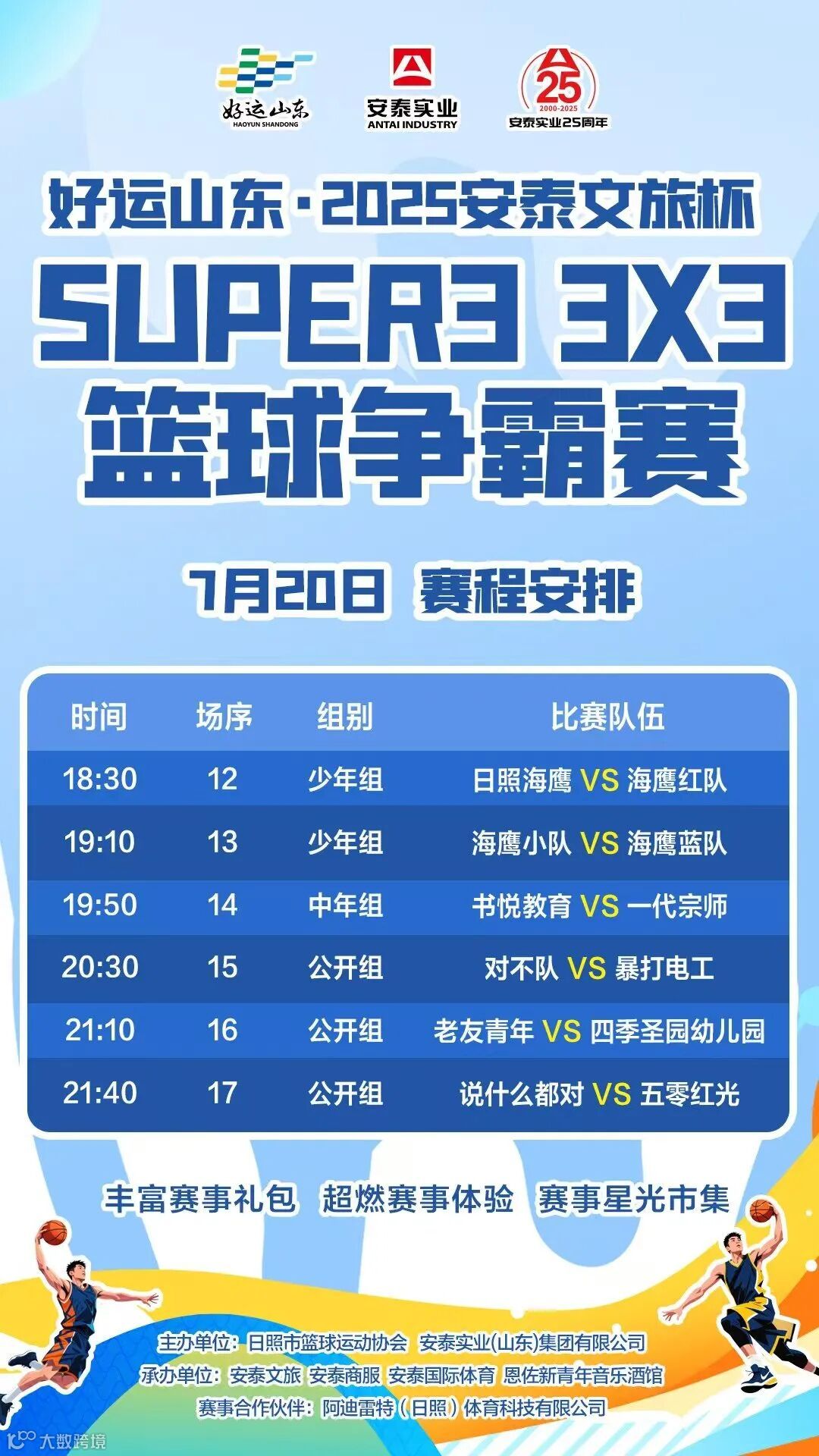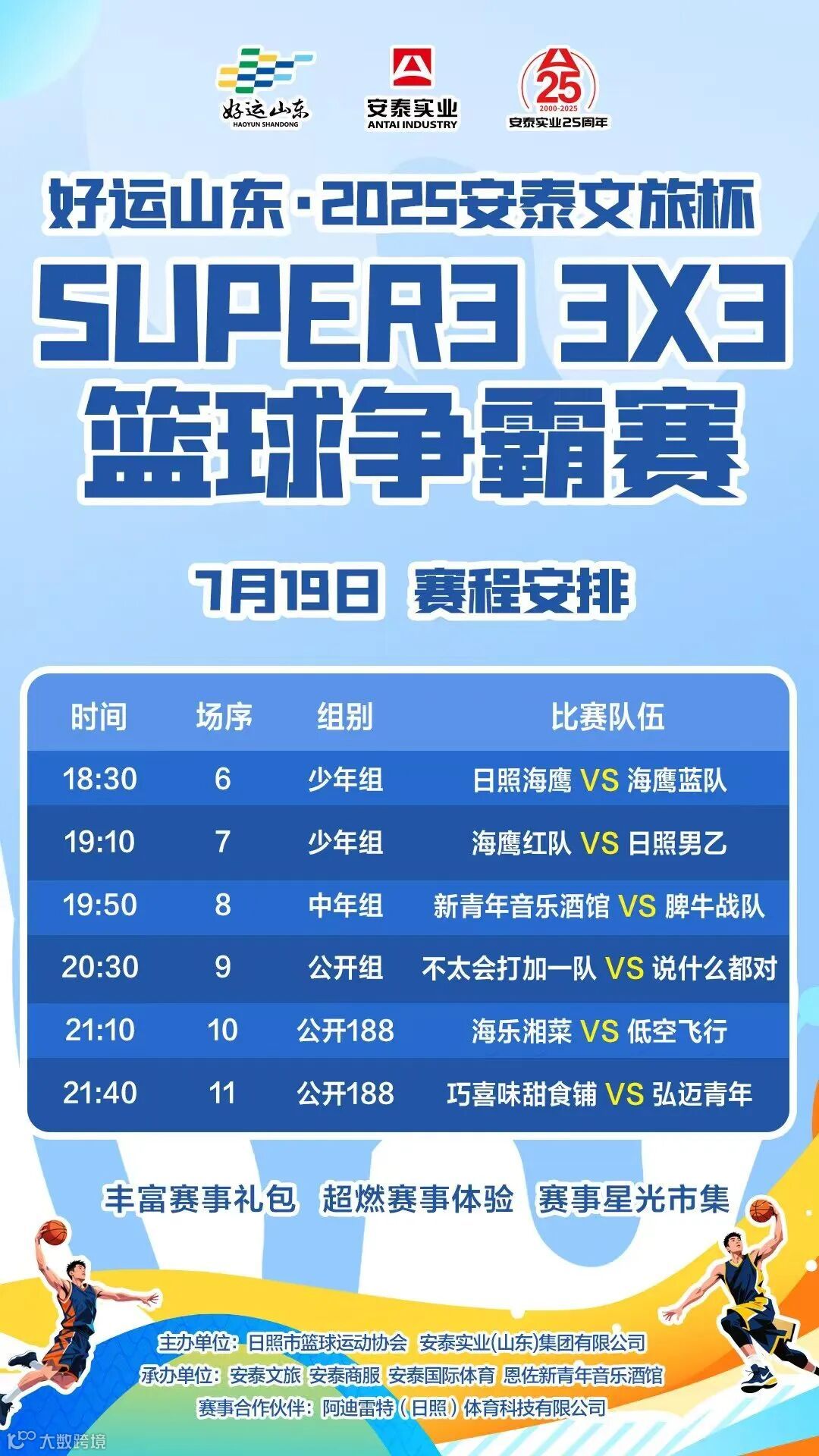 安泰实业25周年系列活动之好运山东·2025安泰文旅杯SUPER3 3X3篮球争霸赛,7月18日19:00,火爆开赛!