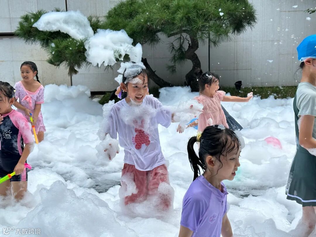 他们在泡泡的海洋中奔跑、嬉戏