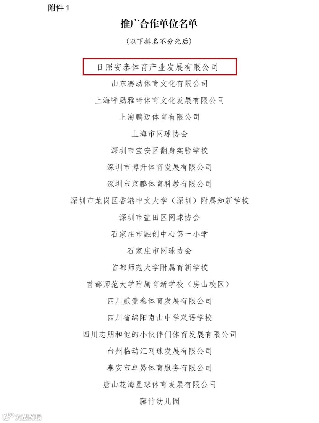 近日,中国网球协会在官方网站对入选中国网球协会“小网球工程”五进工作推广合作单位进行公示,日照安泰体育产业发展有限公司成功入选。“小网球工程”进家庭、进幼儿园、进学校、进社区、进乡村的“五进”工作,让“小网球”成为网球高质量发展的新引擎、儿童健康成长的新能量、家庭美好生活的新方式、体教融合的新纽带。