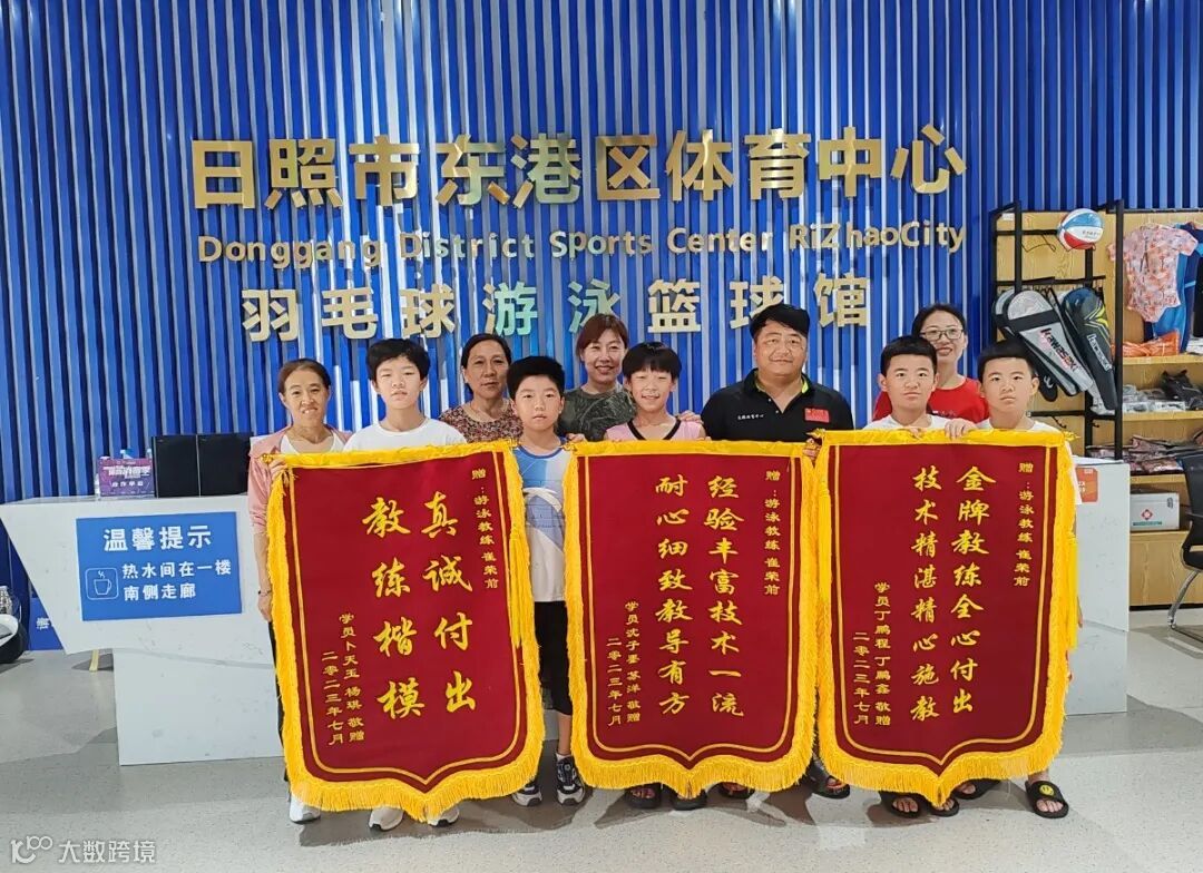“崔教练,真是太感谢您了,让孩子在比赛中取得这么好的成绩!”“崔教练,感谢您的指导和鼓励,让孩子敢于走上赛场,直面挑战!”近日的东港区体育中心,出现了一面面锦旗表心声,一句句感谢显真情的场景。数十名学员和家长,带着锦旗来到场馆,向东港区体育中心游泳教练崔荣前致谢。