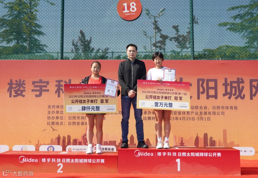 国家体育总局网球运动管理中心赛事部部长吕亮,日照市体育局副局长葛新,安泰实业体育板块负责人万文韬,美的楼宇科技市场部经理杨田亮等领导和嘉宾出席赛事颁奖典礼,为获奖的球员颁发日照太阳城网球公开赛分站专属银质奖牌与丰厚奖金。