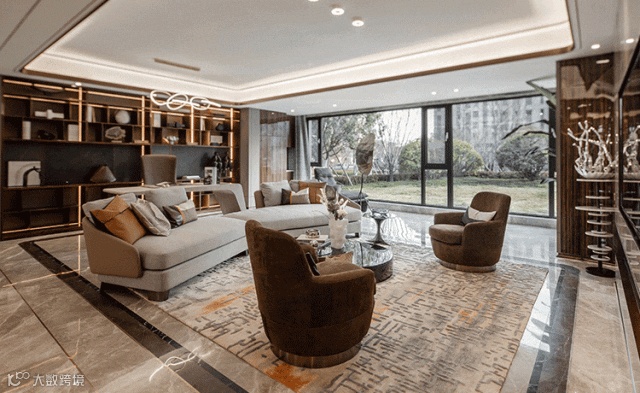 【顶面装饰系统】多变的吊顶结构、无主灯式采光、多元化灯光、隐藏式中央空调风口。