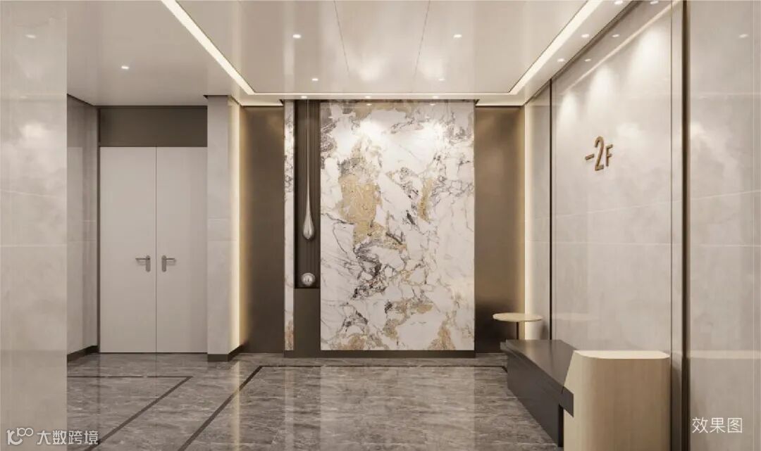 高定大宅,美学涵养,地上地下大堂均为精装,墙面采用高端岩板,结合不锈钢线条,简约雅致的设计语言。整体酒店式精装大堂,融入现代轻奢设计元素使整个空间更加别致,呈现典雅大气的艺术之美。