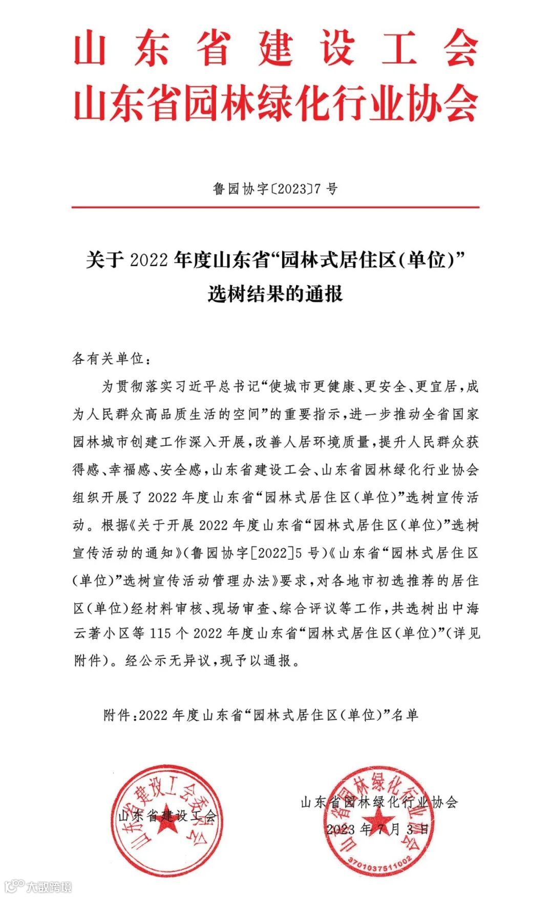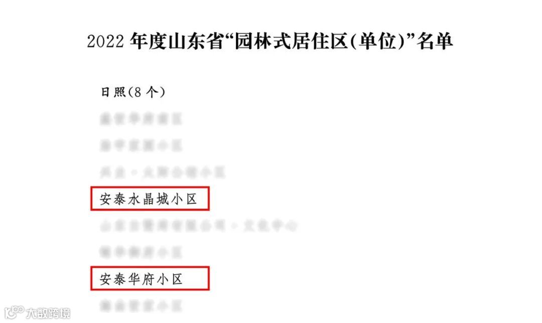 关于2022年度山东省“园林式居住区(单位)”