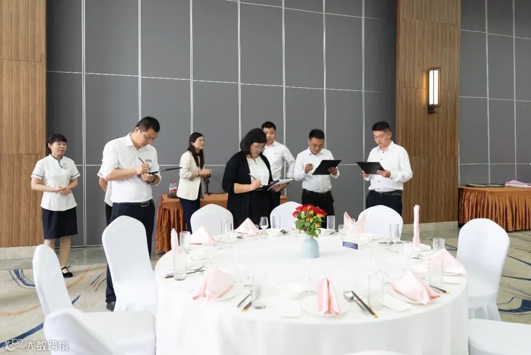 考验员工对中国传统用餐座席的认知及餐桌礼仪分布,餐具罗列整齐、主宾位差异化摆放、特色定制摆台等……