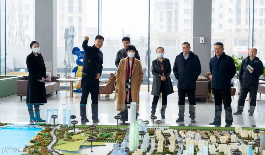 在别振远总经理的陪同下,张金梅副市长一行参观了日照中心云筑艺术会客厅,观看中央活力区沙盘,了解日照中心云筑、雅筑等高品质住宅项目区位,别振远总经理汇报了项目亮点、施工进度等情况。