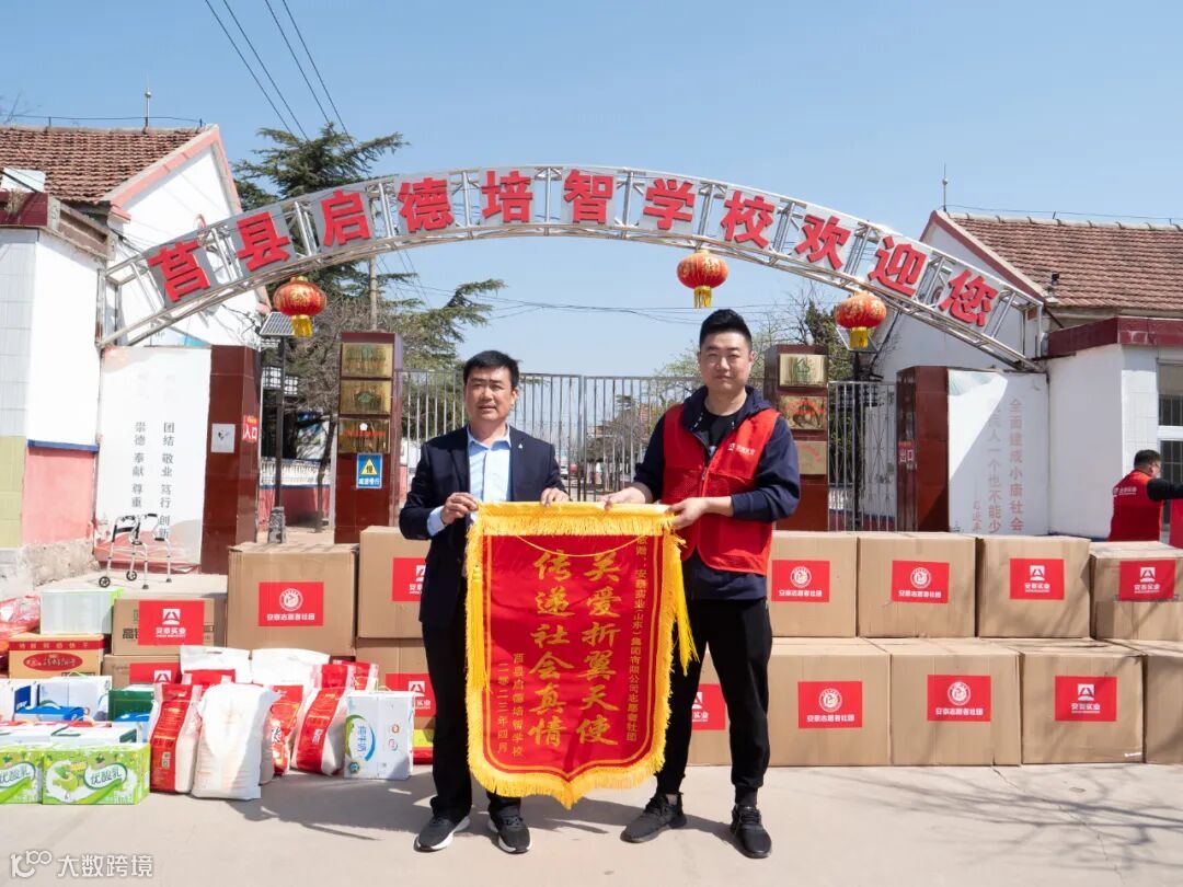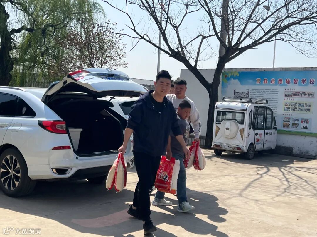 上午10时,20余名爱心志愿者在日照莒县启德培智学校门口集合,数十箱衣物鞋帽与大米、牛奶、洗护品、书包、文具等爱心捐赠物资堆满了学校门口。