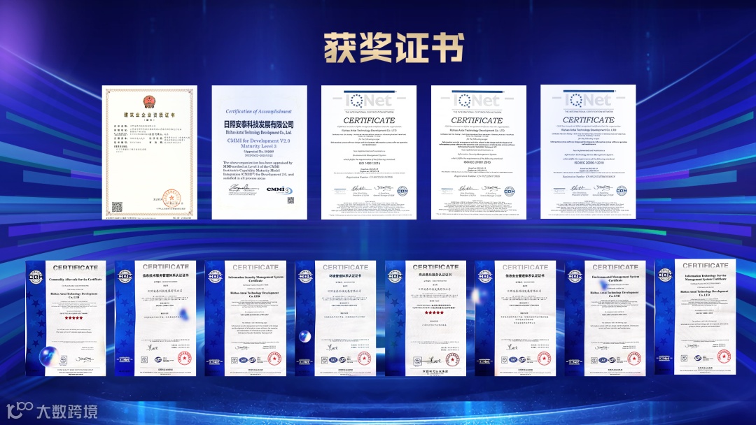 在知识产权及企业资质体系建设上,我们也同样取得了新成绩,这一年,累计取得发明专利、软件著作权等知识产权40余项,通过了CMMI、ISO9001、20000、27001等多项国内外专业企业资质认证,获得了建筑业二级企业资质认证,取得了省级企业研发平台认定,通过了市级专精特新企业评定。