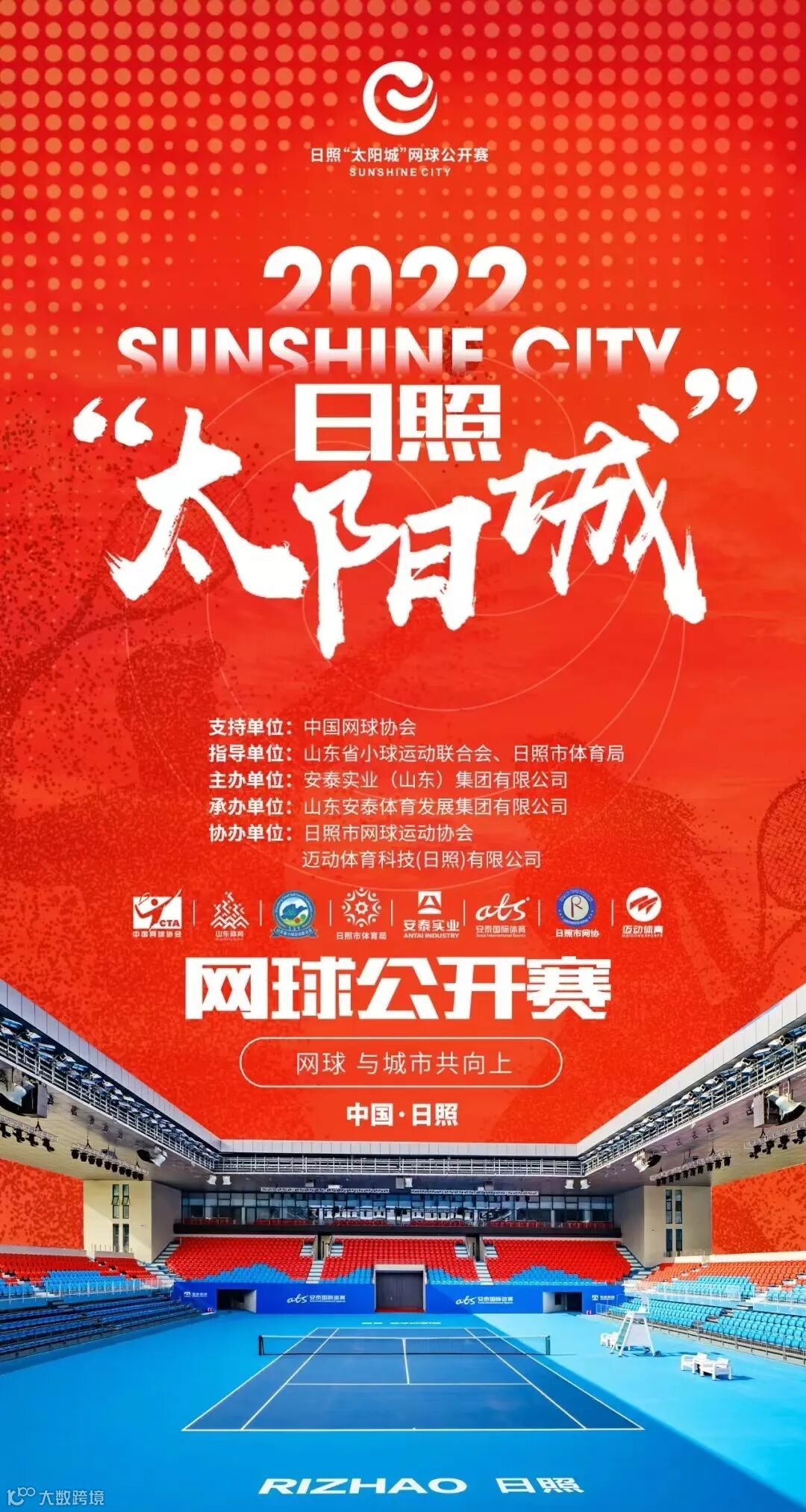 日照“太阳城”网球公开赛由中国网球协会支持,山东省小球运动联合会、日照市体育局进行指导,安泰实业(山东)集团有限公司主办,日照安泰体育产业发展有限公司承办,日照市网球运动协会、迈动体育科技(日照)有限公司协办。更多赛事资讯,请持续关注我们!