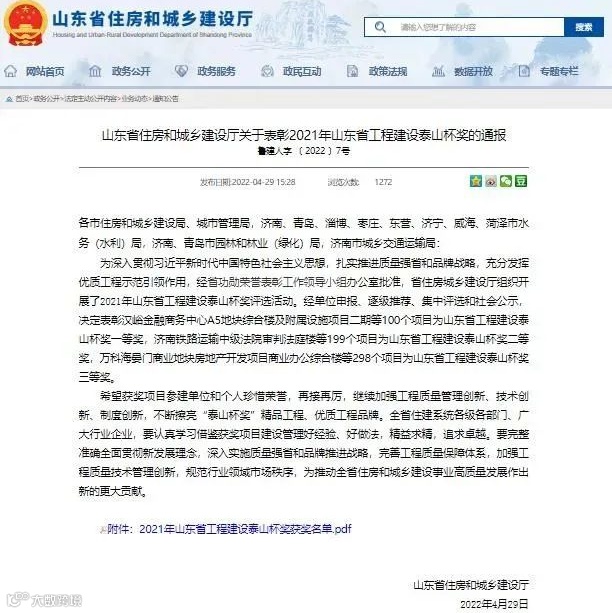 近日,省住建厅公布了“泰山杯”奖表彰名单,安泰实业4项工程入选,“泰山杯”是山东省建筑行业工程质量方面的最高荣誉奖,与往年不同的是,在本次泰山杯评选中新增了物业服务方向的奖项,从物业服务的角度对省内的优秀项目进行了评选,代表着对省内优秀物业服务企业的肯定。