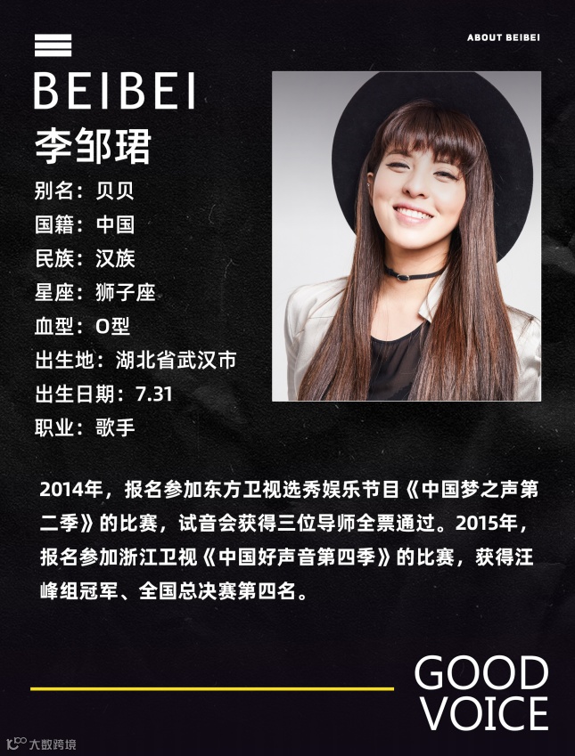 中国好声音汪峰组冠军、全国总决赛第四名贝贝