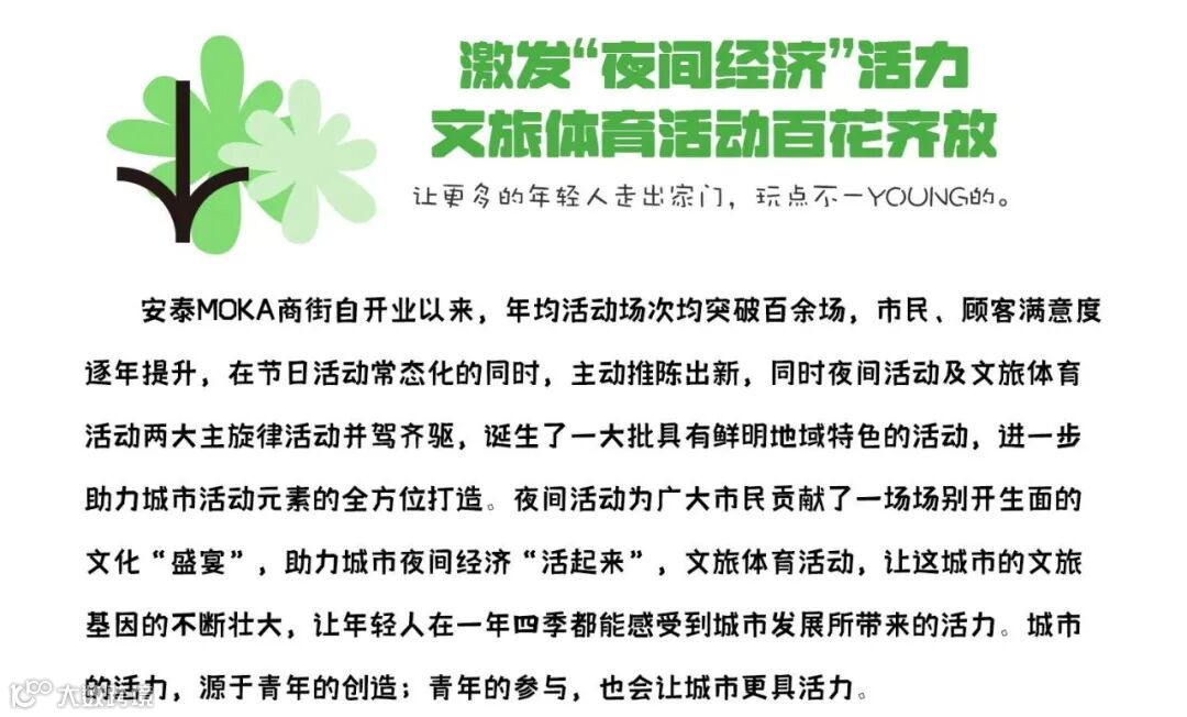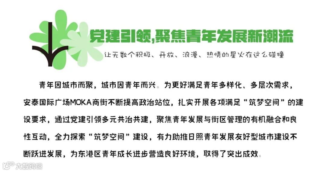 近年来,安泰国际广场MOKA商街始终以“服务青年所需、激发城市活力”为发力点,推动青年发展和城市高质量发展相融相促,助力日照打造青年发展友好型城市。那让我们一起来看看建设过程中由哪些亮点做法吧!