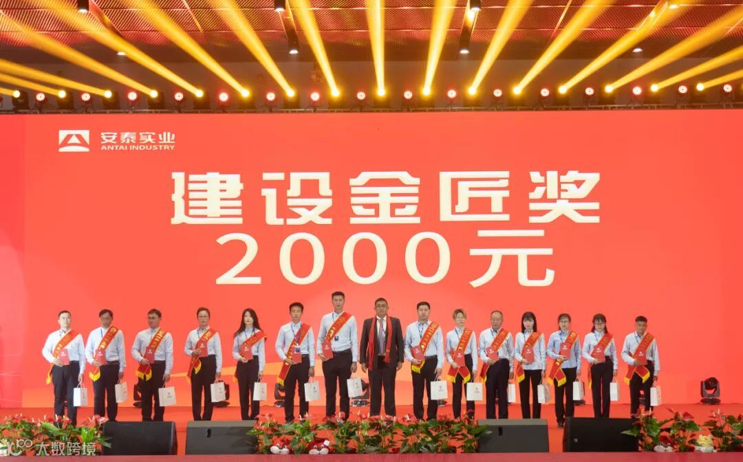 会议对2021年度为安泰实业发展作出突出贡献的先进个人和先进集体进行了表彰奖励。物业标兵、逐梦蓝湾奖、建设金匠奖、敬业奉献奖、新锐奖、外派奉献奖、良工巧匠奖、卓越管理者、卓越团队、创新建议奖、工程质量奖、完美交付奖、营销专项奖、突出贡献奖……随着奖项不断揭晓,获奖人员的信息在大屏幕上一一展示,台上笑脸洋溢,台下掌声不断,全场掀起阵阵高潮,气氛热烈。