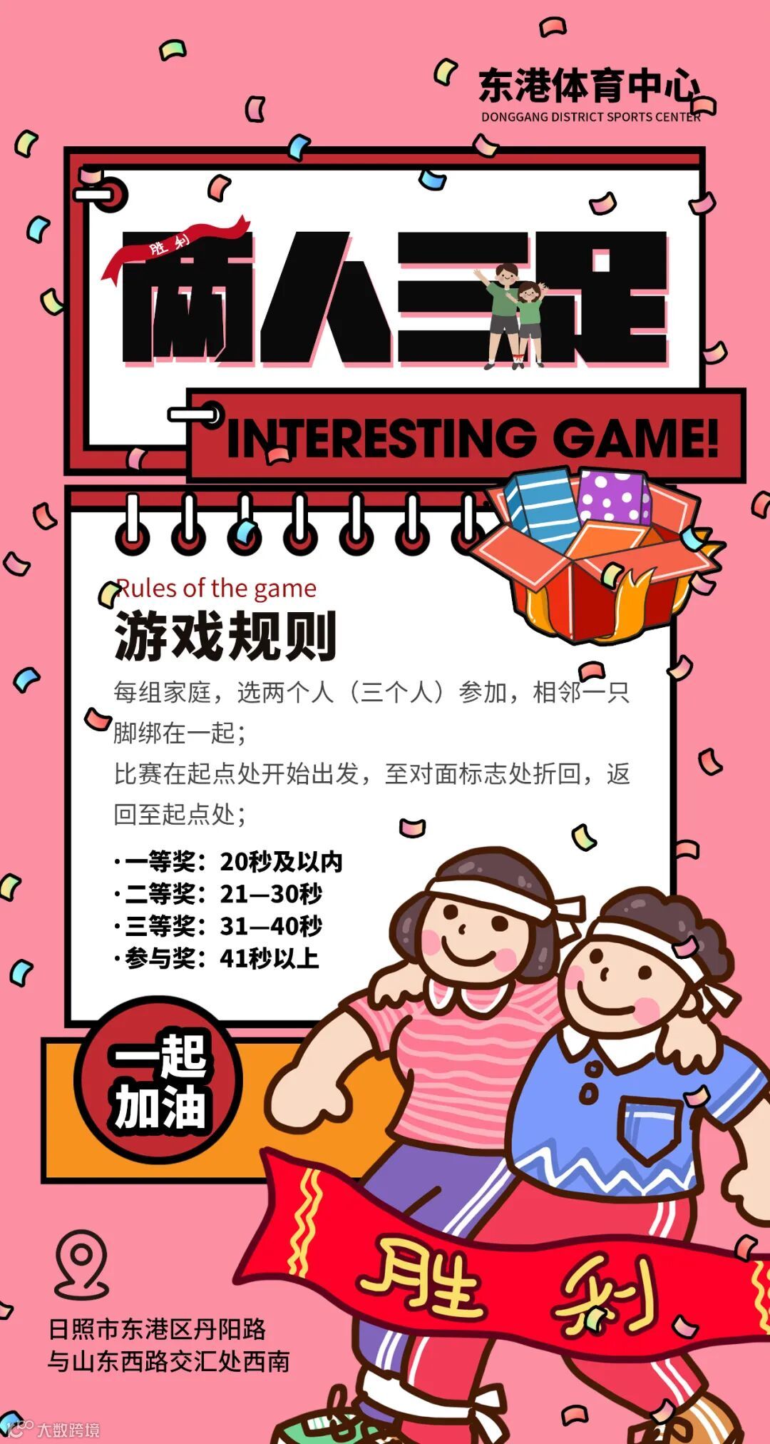 参与市民体验日活动家庭在东港区体育中心综合馆参与趣味运动项目,包括中心场馆投篮活动和两人三足限时跑活动。活动成绩优异的家庭将获得神秘奖品鼓励。