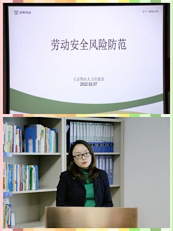 ▲安泰物业人力资源部经理袁丽做劳动安全风险防范培训