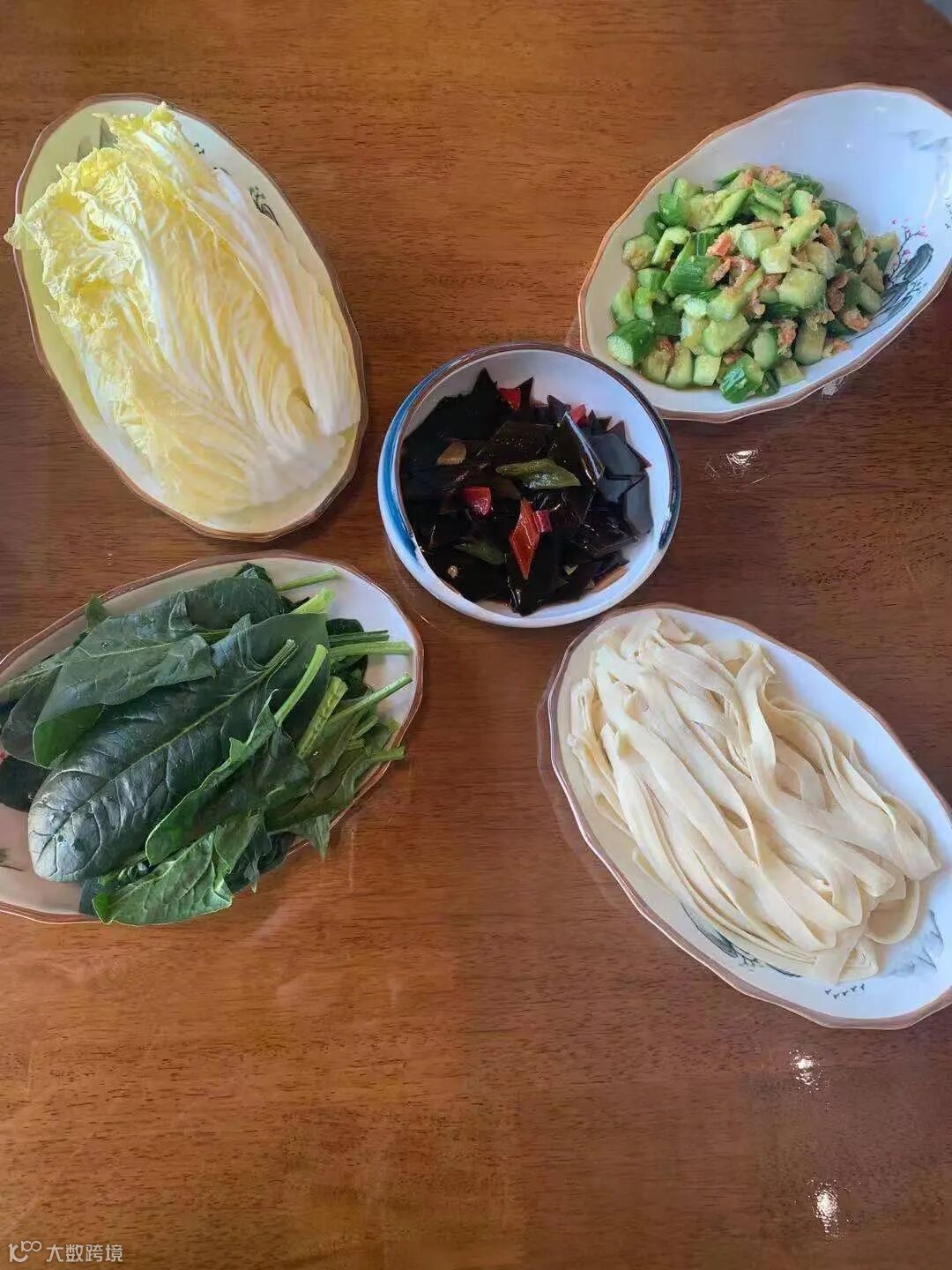 酸汤鱼火锅套餐中包含几款新鲜时蔬和一份巨Q弹的手擀面!