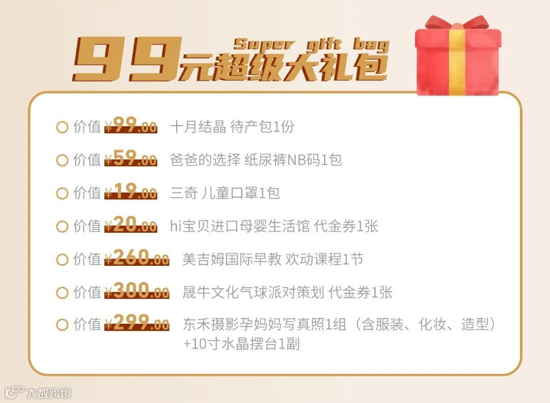 6日至7日,到店的准爸准妈们,99元即可抢购月子房优先预定资格,您可以在开业前夕订房优惠的基础上立减999元,同时获得超级大礼包一份