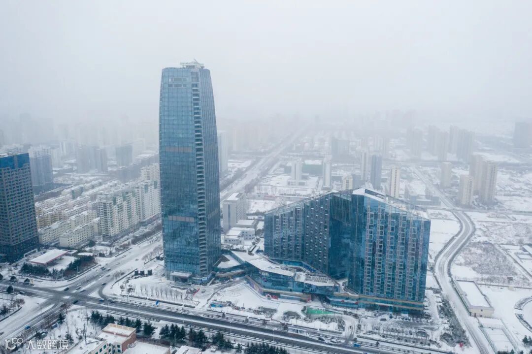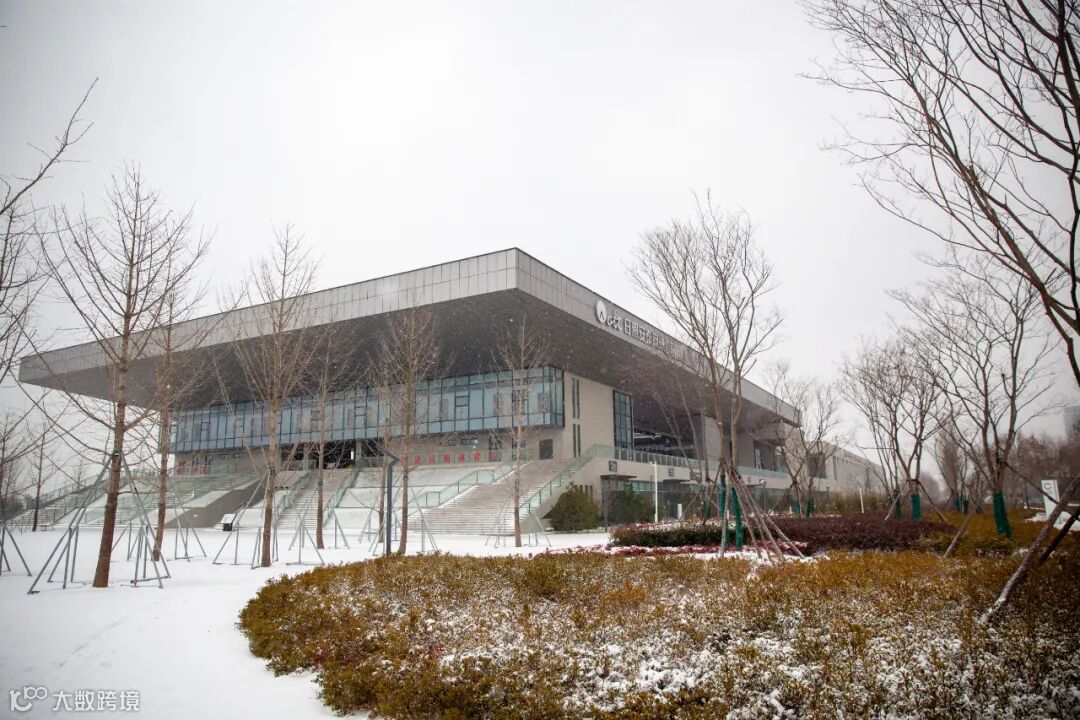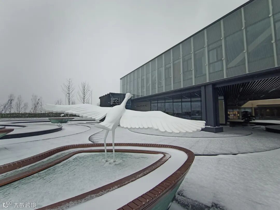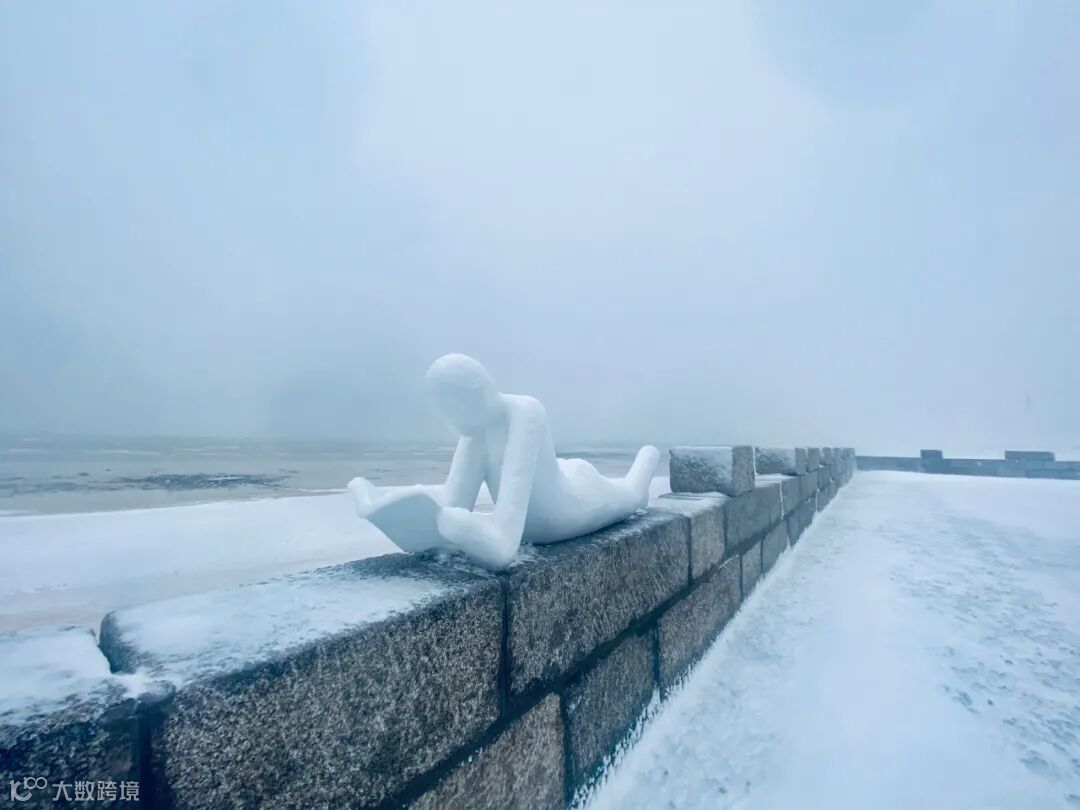 雪中的海洋体育综合体,虽只剩下孤零零的足球雕塑屹立在雪中,却不失“千山鸟飞绝,万径人踪灭”的寂寥之美;