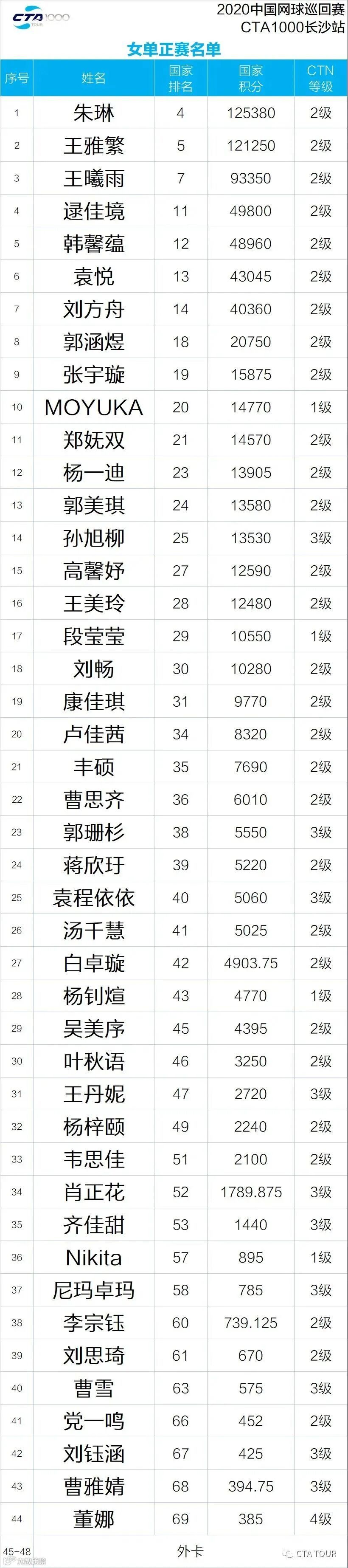 2020中国网球巡回赛CTA1000长沙望城站将于2020年9月19日至26日在湖南长沙市月亮岛红土网球公园举行。本站赛事依旧设置男子单打、男子双打、女子单打以及女子双打四个项目。安泰签约球员王美玲、孙浅、张佳乐现已抵达赛区,正在全力备战本届赛事,他们将作为