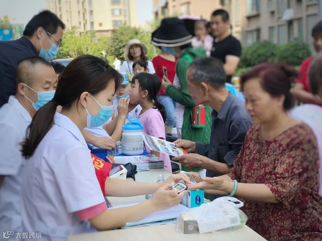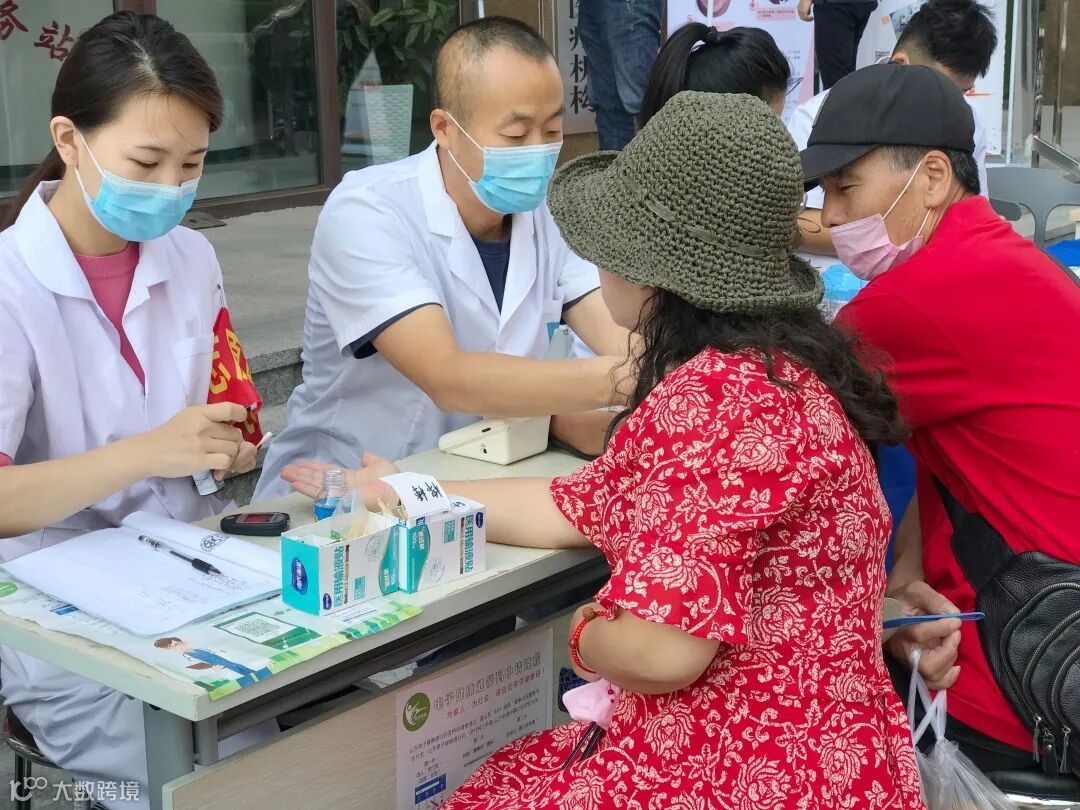 活动现场有血压测量、血糖测量、口腔健康检查等诊疗服务。