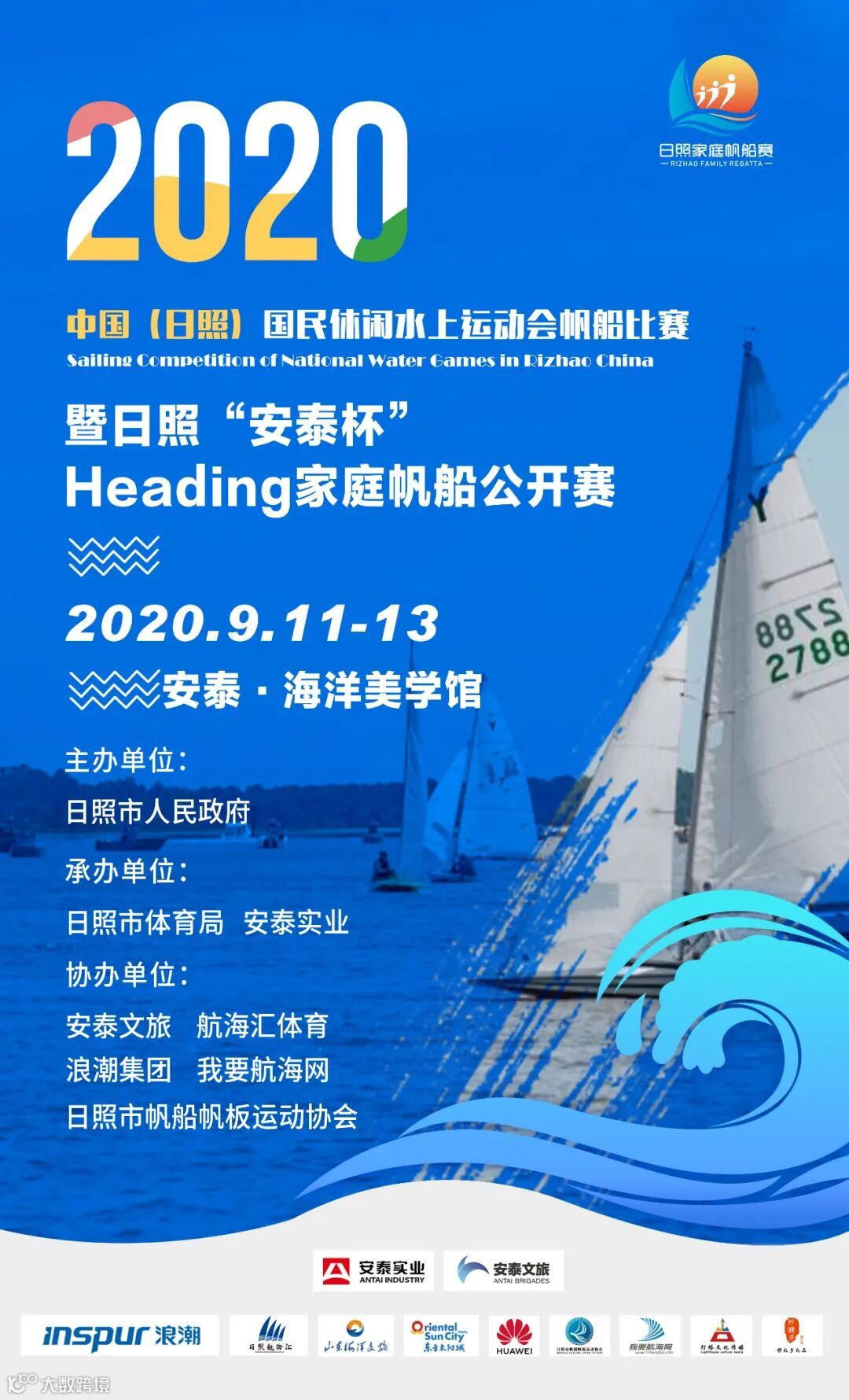 9月11日-9月13日,2020中国(日照)国民休闲水上运动会帆船比赛暨日照“安泰杯”Heading家庭帆船公开赛(下文简称家帆赛)将在日照市山海天旅游度假区安泰·海洋美学馆拉开帷幕。