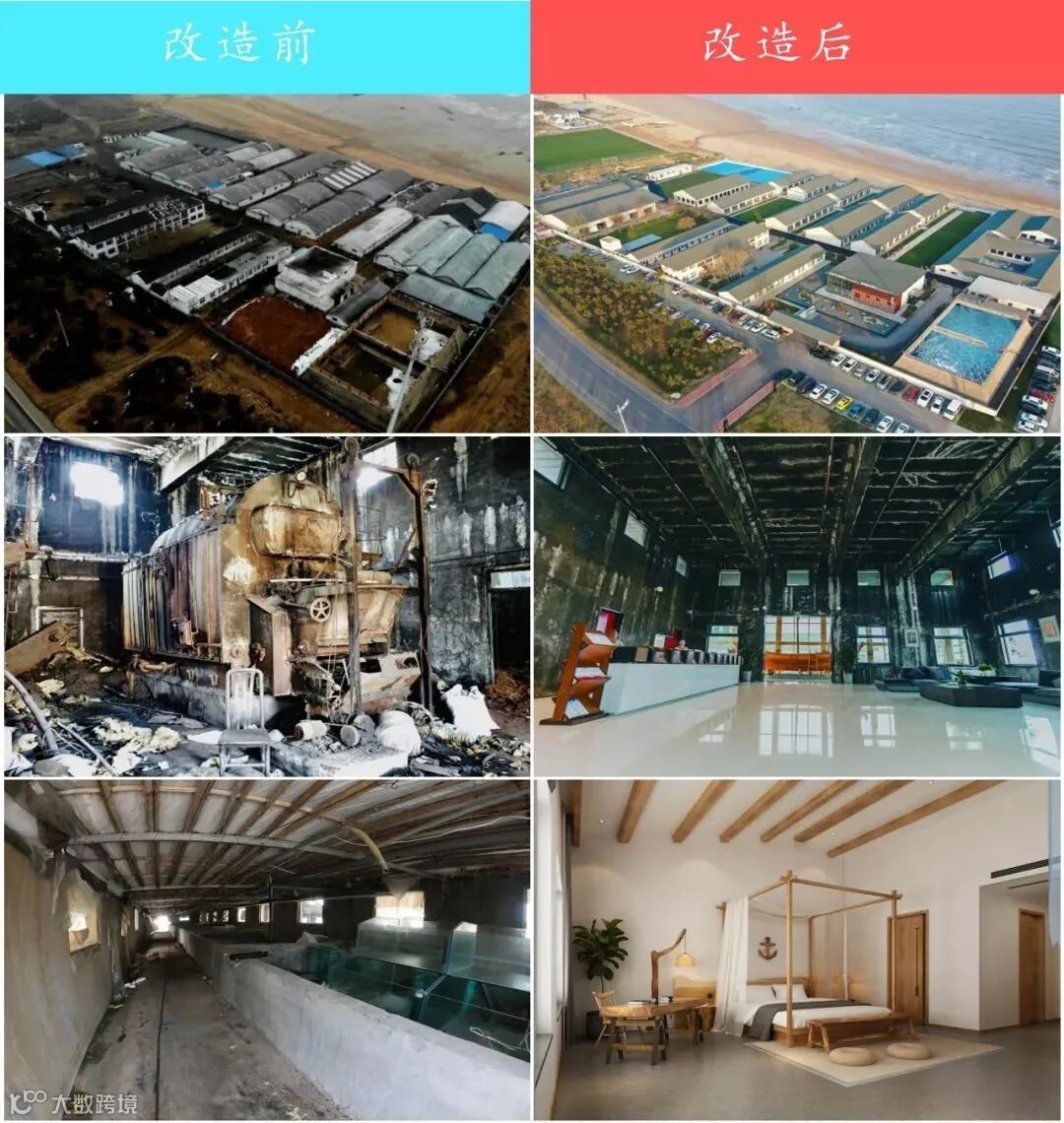特色的爆款网红民宿项目,把锅炉房改造成接待大厅,蓄水池改造成潜水池,育苗池改造成无边泳池,既对原有建筑做了最大程度利用,极富创新精神,又彰显了海洋美学特色,形成了集“海洋之美、运动之美、人文之美”的于一体的阳光海岸带特色民宿项目。