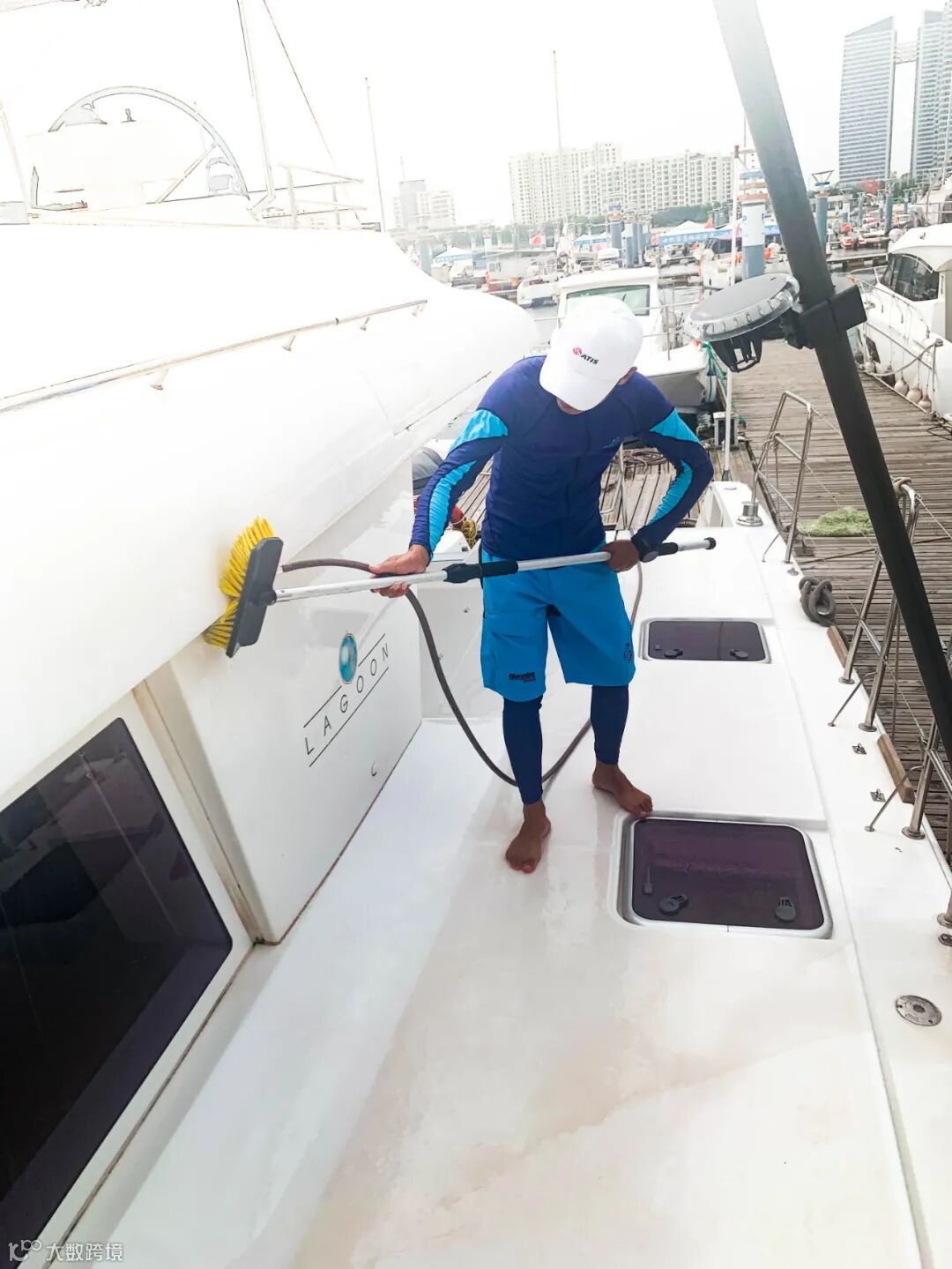 光亮的船体,洁白的风帆。开心航海俱乐部的船员们,顶着如火烈日,精心呵护心爱的帆船。