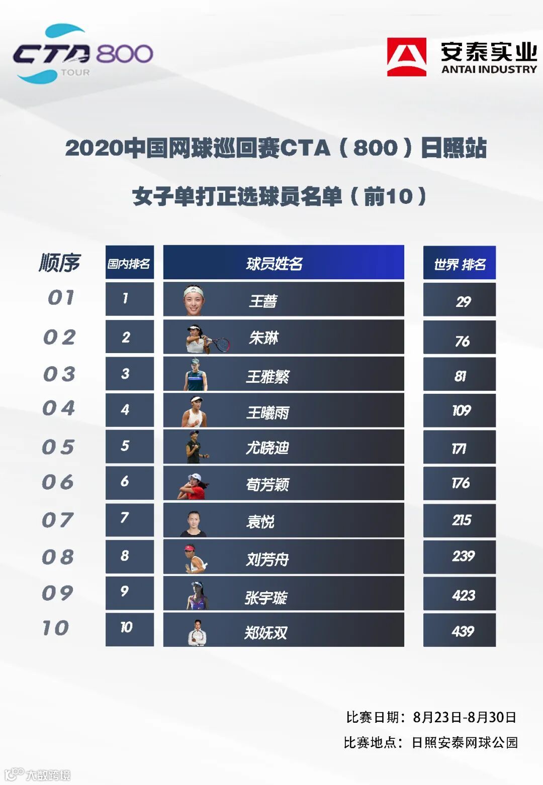 即刻起,转发此文章到朋友圈,并配文:“2020中国网球巡回赛日照站+你心目中的男女单打冠军人选。”转发成功后将朋友圈截图发送至本公众号(安泰网球俱乐部)后台,我们将从正确答案中随机抽选5位幸运球迷获得球员签名大礼包一份(包含名气球员签名、网球运动装备等),活动截止时间:北京时间8月23日00:00。
