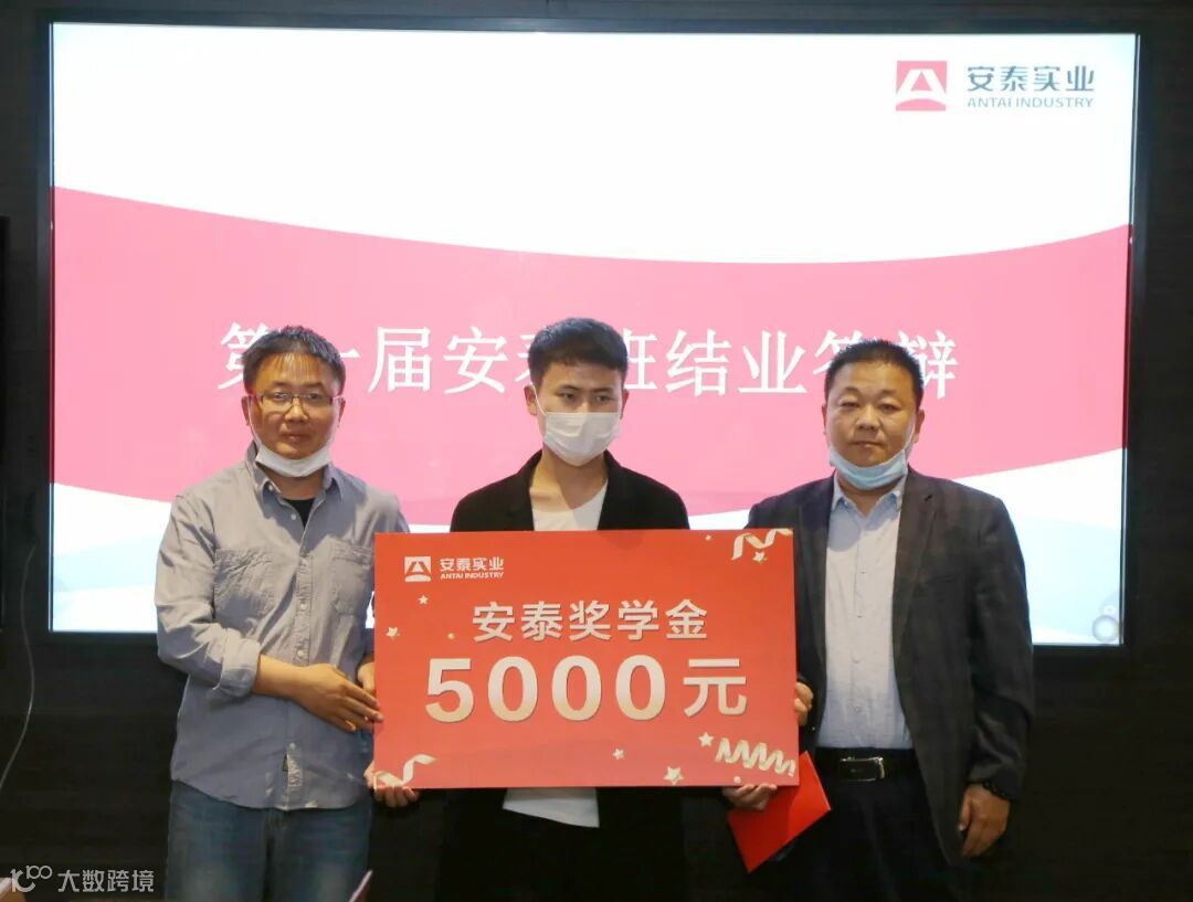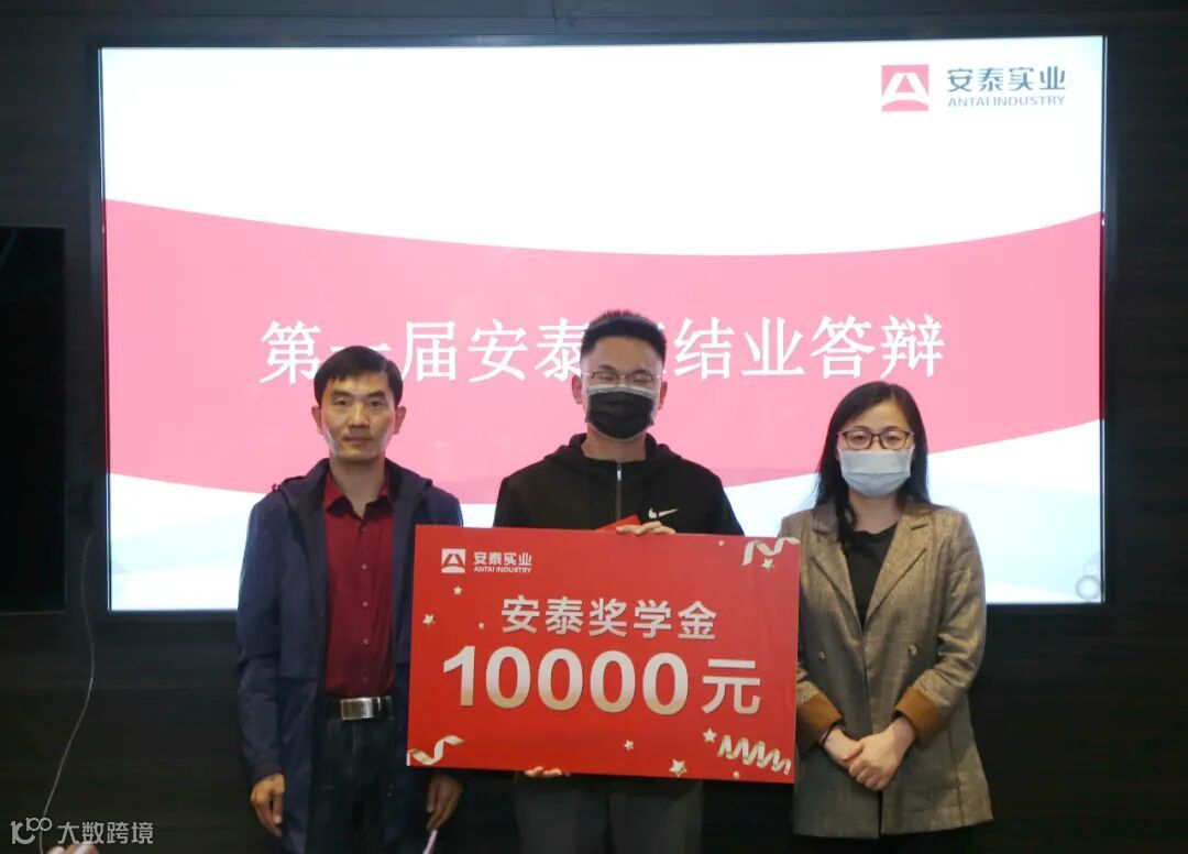 由公司领导和校方领导组成的评审团对学员汇报进行点评,并现场提问和打分,最终评选出4名获奖学生,并颁发2.1万元“安泰奖学金”。