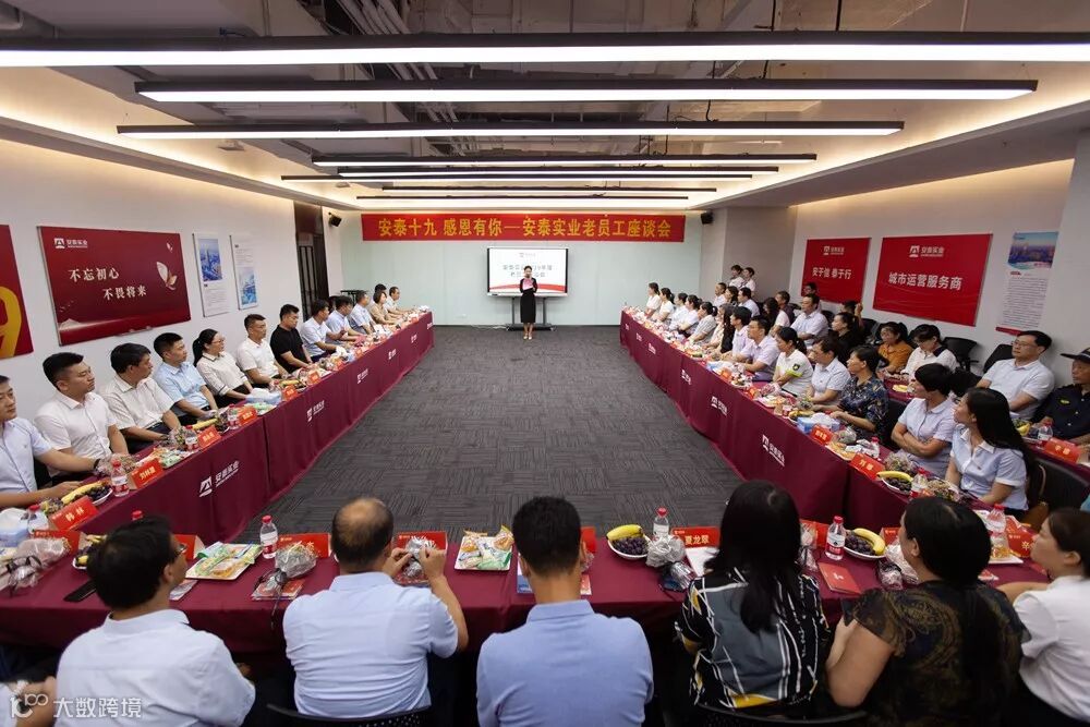 8月15日,安泰国际广场多功能厅花团锦簇、掌声阵阵、气氛热烈,安泰实业十年以上工龄员工座谈会在这里隆重举行,安泰实业董事长别程远,总经理别振远,集团高管、九大板块负责人及十年以上工龄员工代表70余人参加会议。