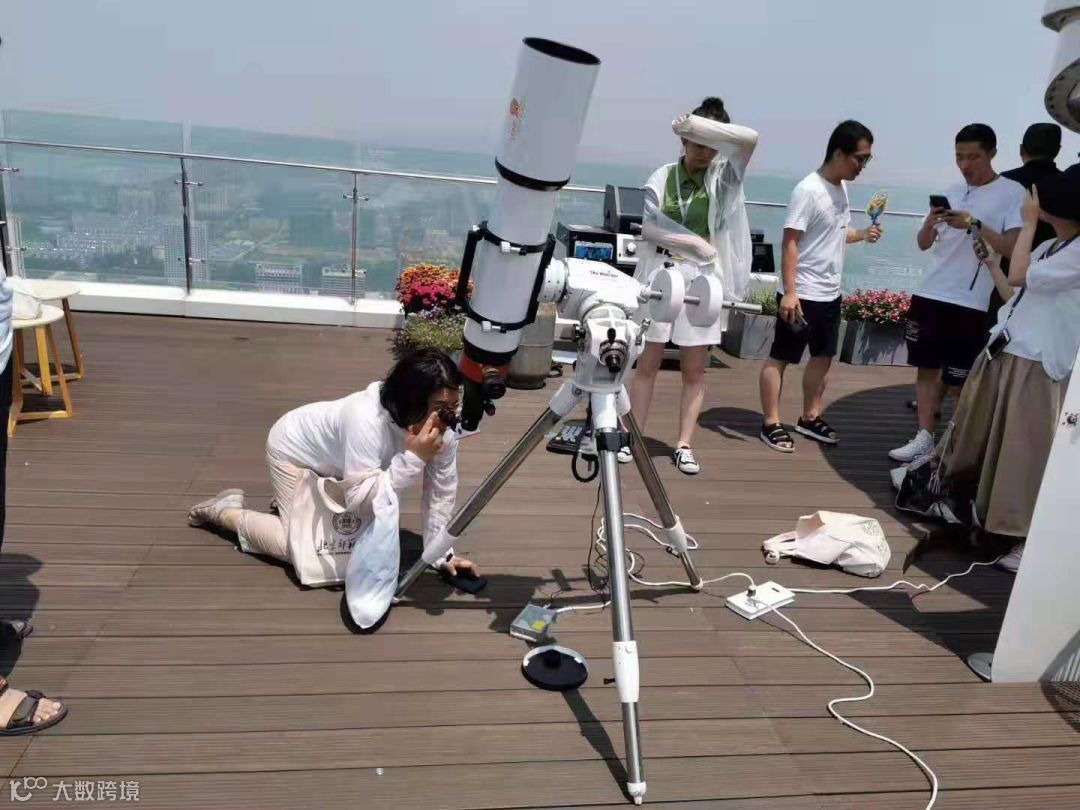 (你得到什么,取决于你付出什么。炎炎烈日下,参加培训的教师在安泰国际广场顶楼的天文台观测日珥)