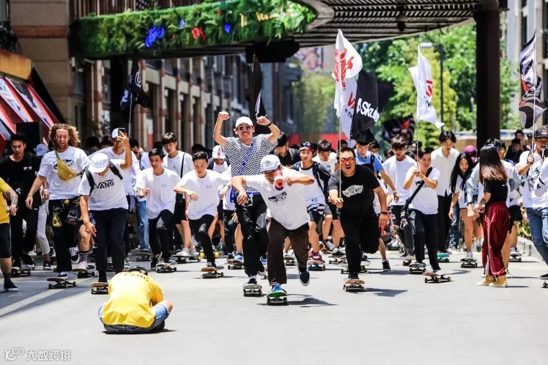 由滑板店出发,跟随举旗领头人的带领路线,集体刷街前往主活动场地 安泰国际广场MOKA商街 外广场