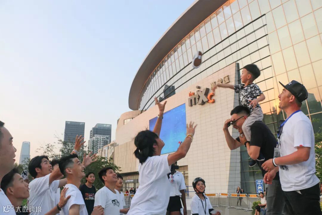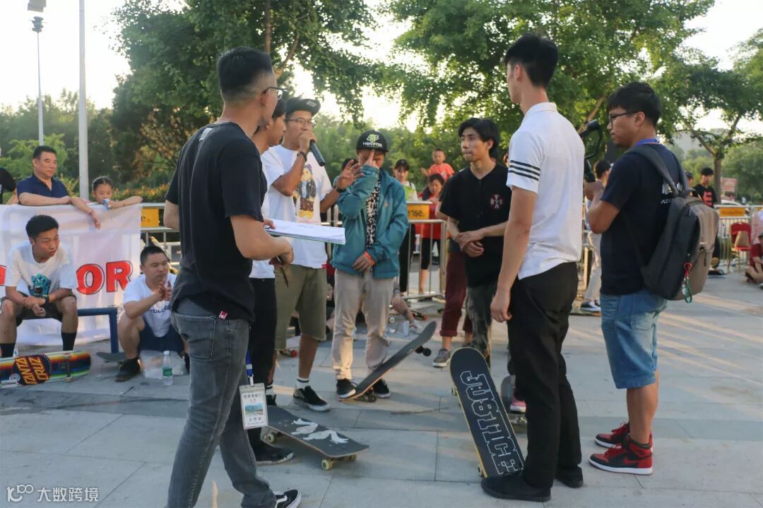 抵达场地后,召集滑手在标志建筑下拍摄场地大合影,第一波抽奖之后开始比赛项目。