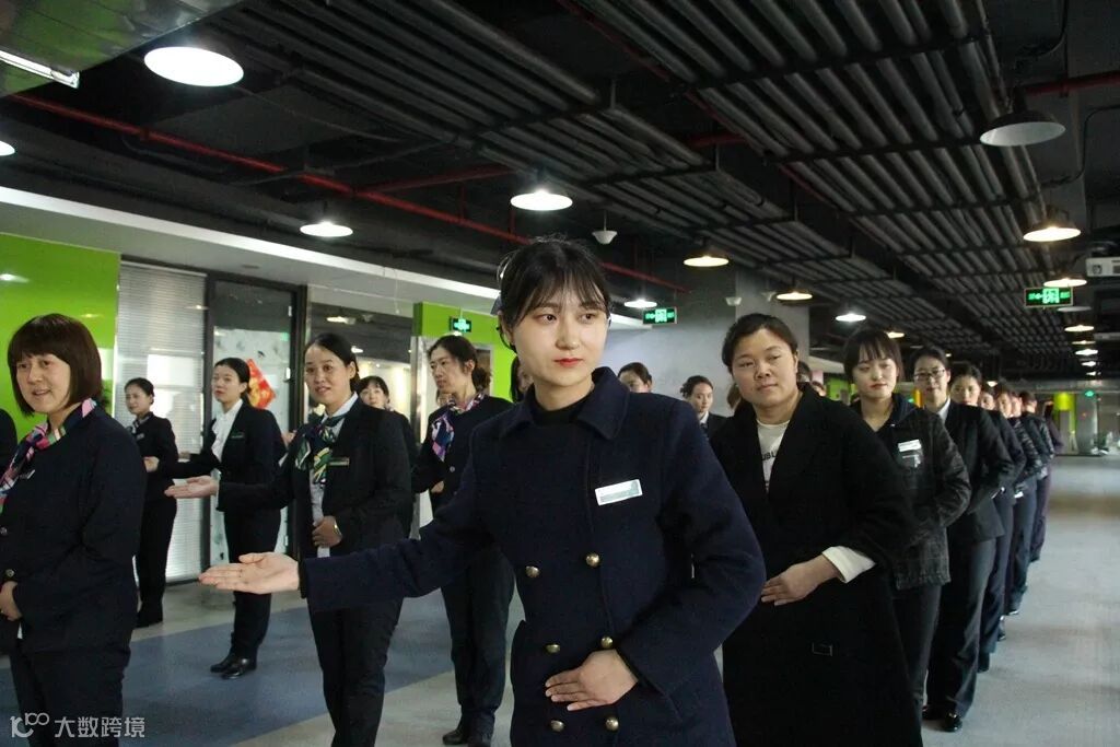 “抬头、挺胸直腰、肩平、收腹、身体重心放到两脚中间。”老师说这样才能让人有宾至如归的感觉。