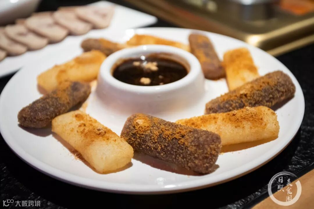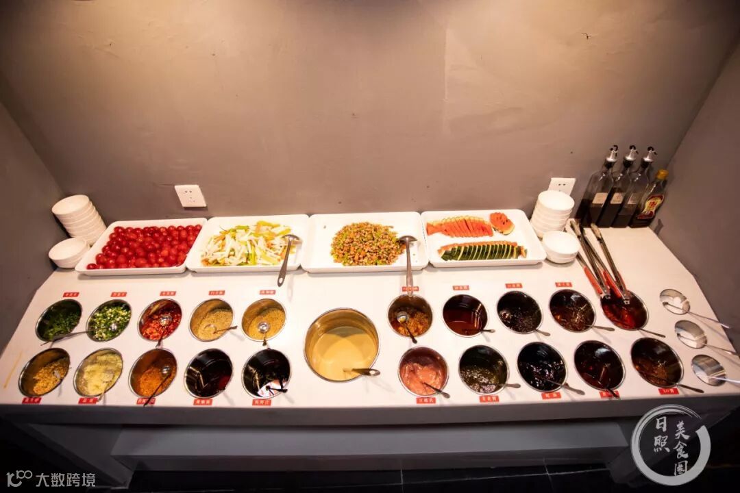 店里大概有20+种蘸料,还有免费的水果和小菜,也太划算了吧~