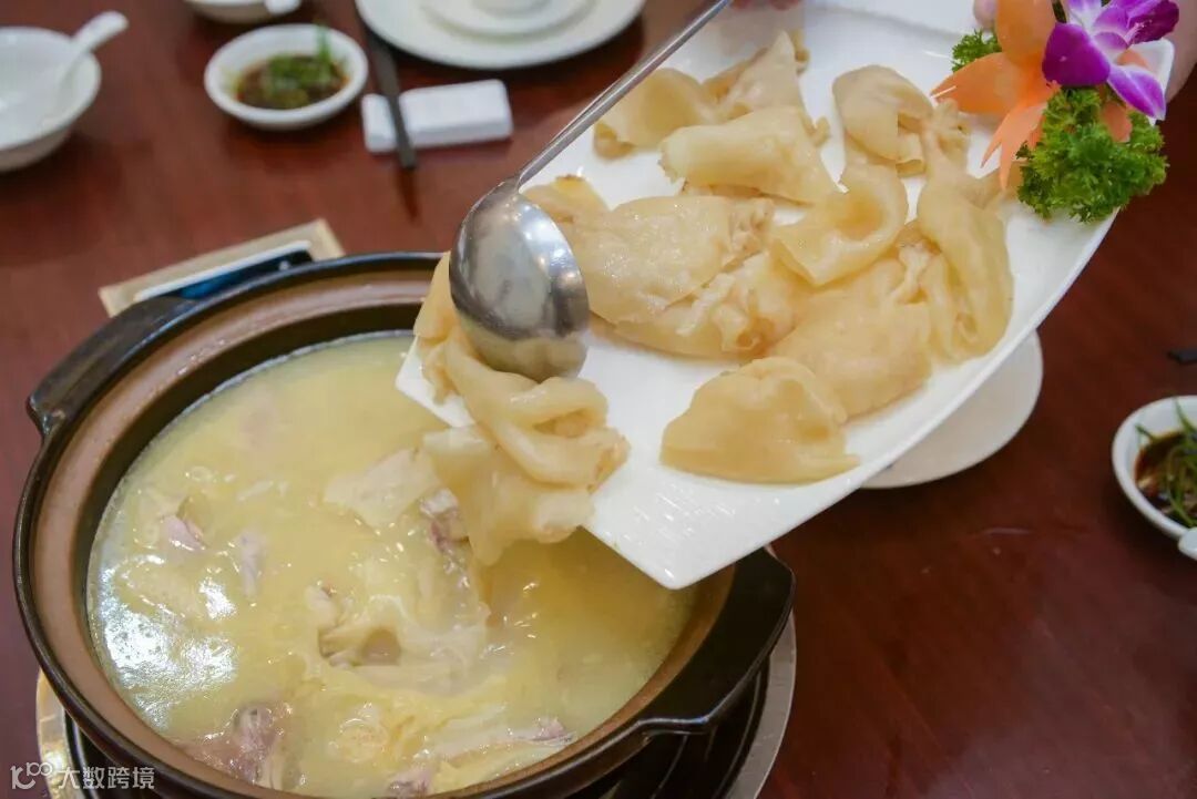 精选的花胶煮完厚实透亮,滑爽无腥味。咕噜咕噜翻腾的汤底实在太诱!人!啦!
