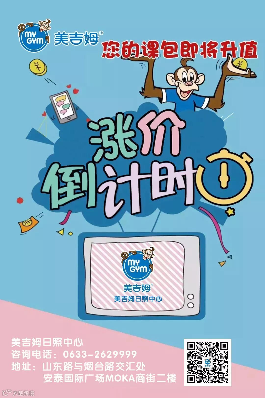 Mymo强烈建议您别错过“百倍计划”钜惠,如果您有二胎计划,别再犹豫了,抓住最省钱的时机吧!请您尽快联系您的课程顾问老师或拨打电话:2629999(日照中心)