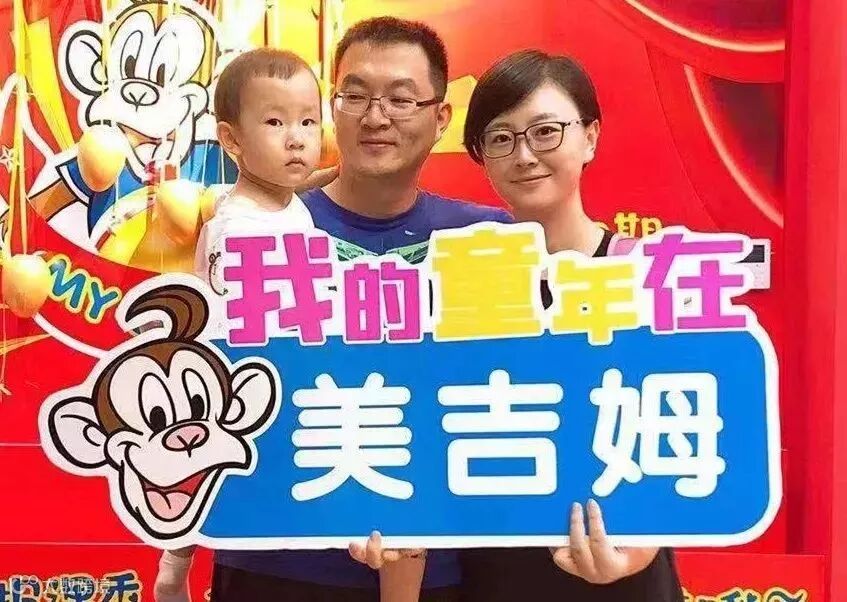 发射盆友O并附图宝宝手拿“我的童年在美吉姆”的照片