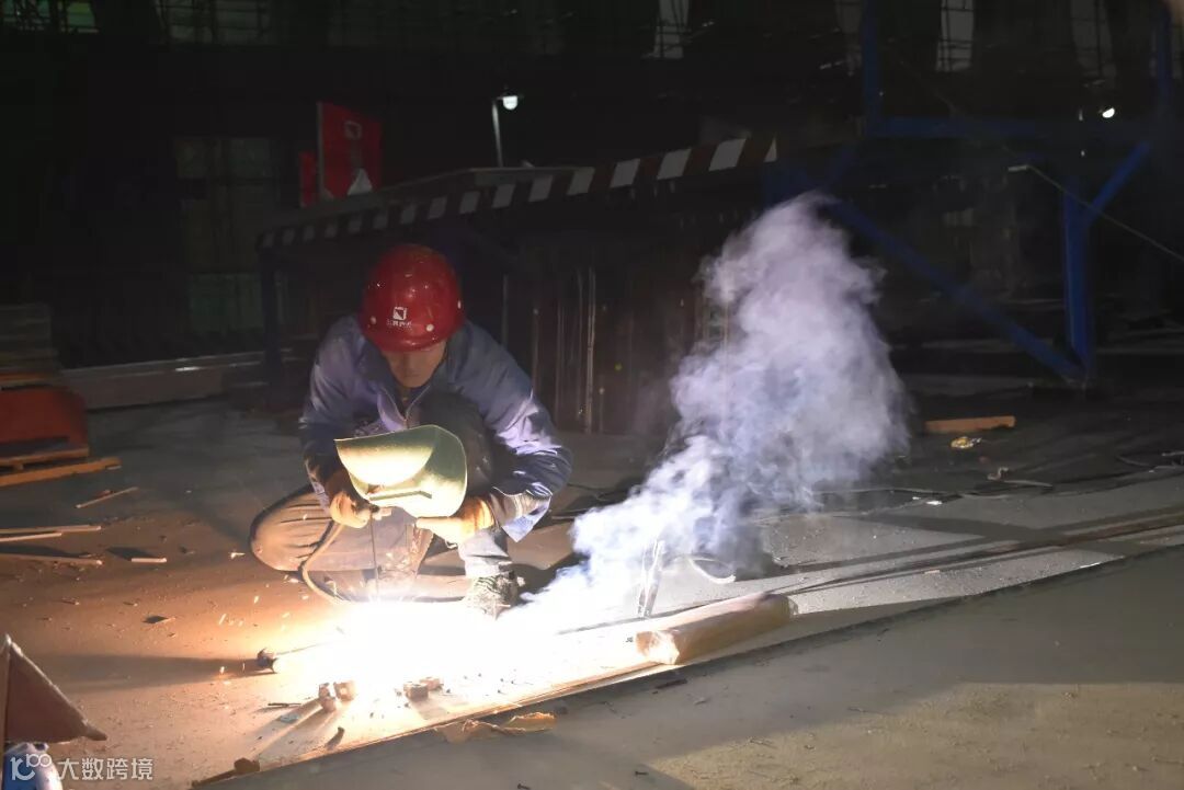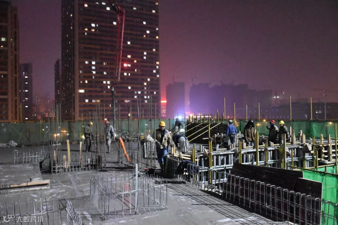 ▲夜间施工中