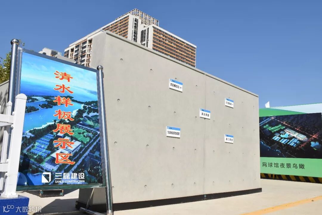 清水混凝土是安泰网球公园项目最大的亮点,也是最大的难点。清水混凝土的质量管控精细,浇筑时间是普通混凝土的4-5倍,对钢筋质量、模板精度和浇筑振捣要求异常严格,给项目部带来严峻考验!三磊建设提前部署,多方考察选定施工单位,在施工中坚持方案先行、样板引路、质量为先;严格材料选择,做好源头把控,确保质量及颜色统一;所有模板采用精密锯切割,保证拼缝顺直,阳角模板全部采用45度对缝,施工过程中严格控制混凝土泵送速度,分层布料、分层振捣,振捣过程中采用秒表计时,确保振捣质量;加强养护管理,确保48-72小时覆膜保温,专人养护15天,确保养护效果。