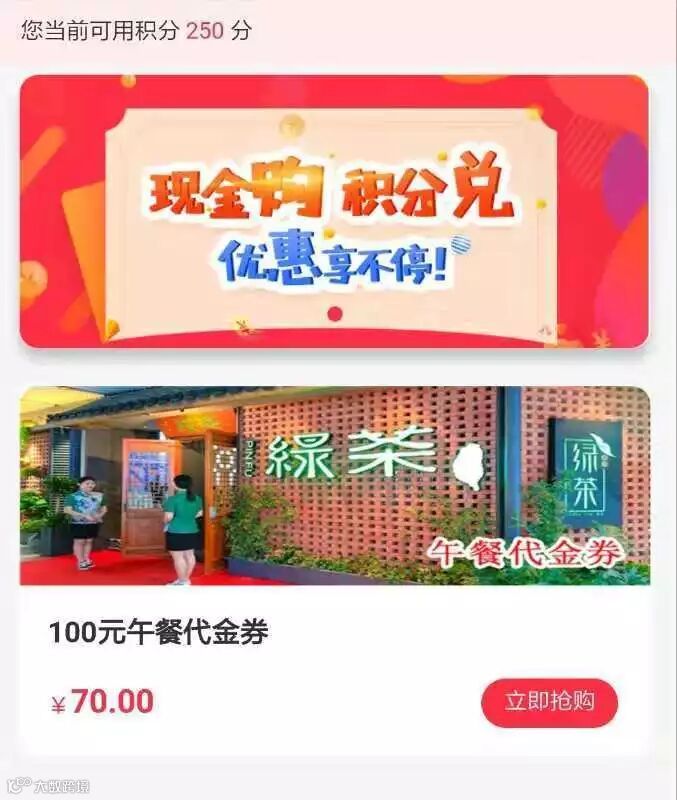 然后点击“100元午餐代金券”