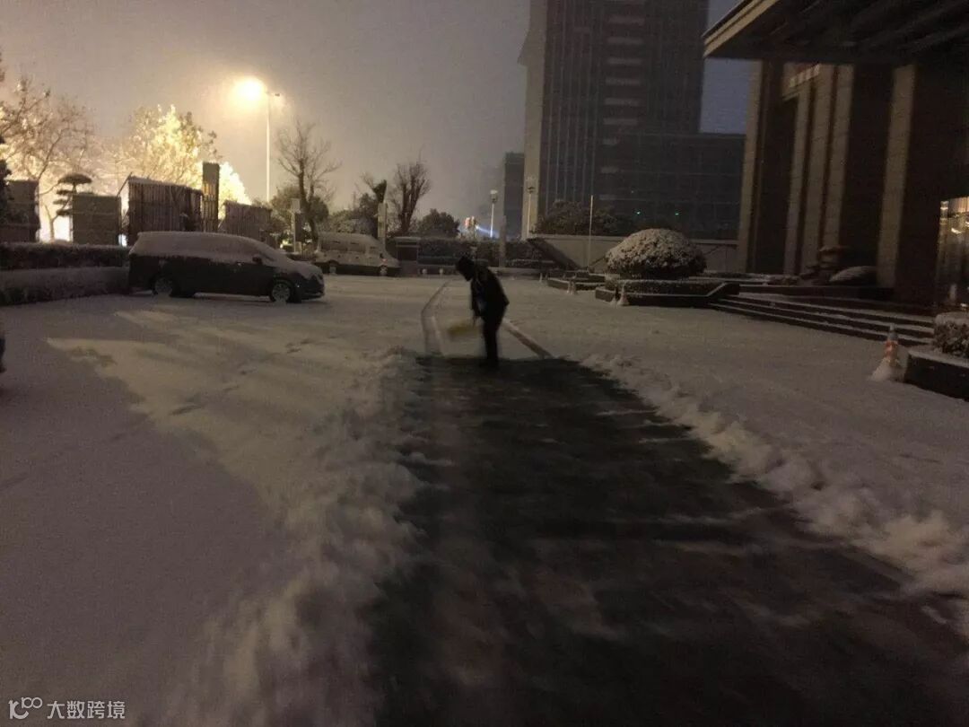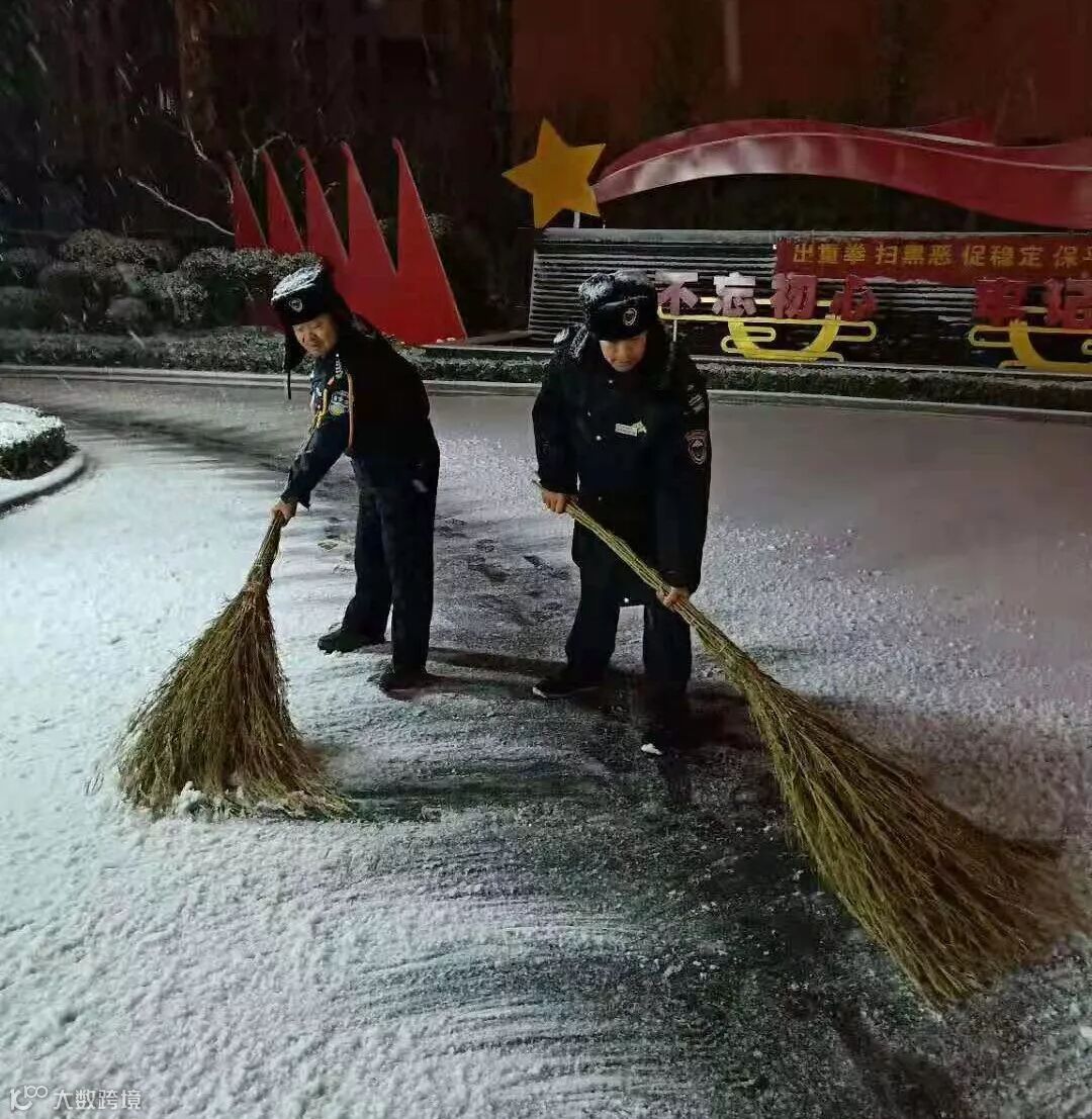 还有夜里冒雪清扫积雪的物业人。
