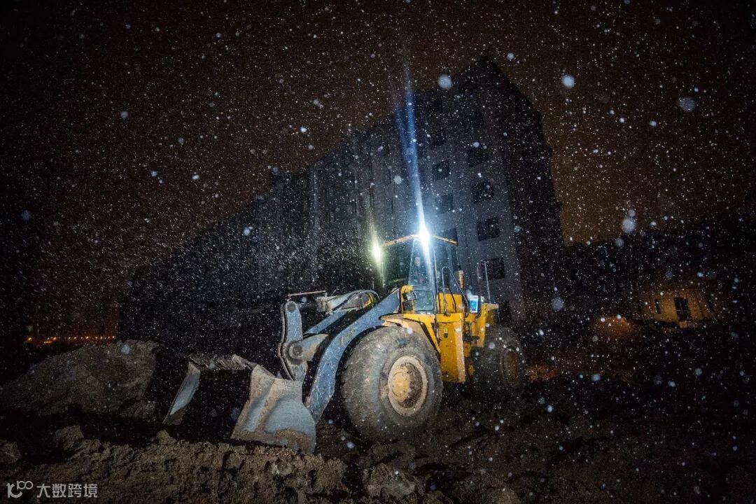 风雪中,是热火朝天的施工场面!